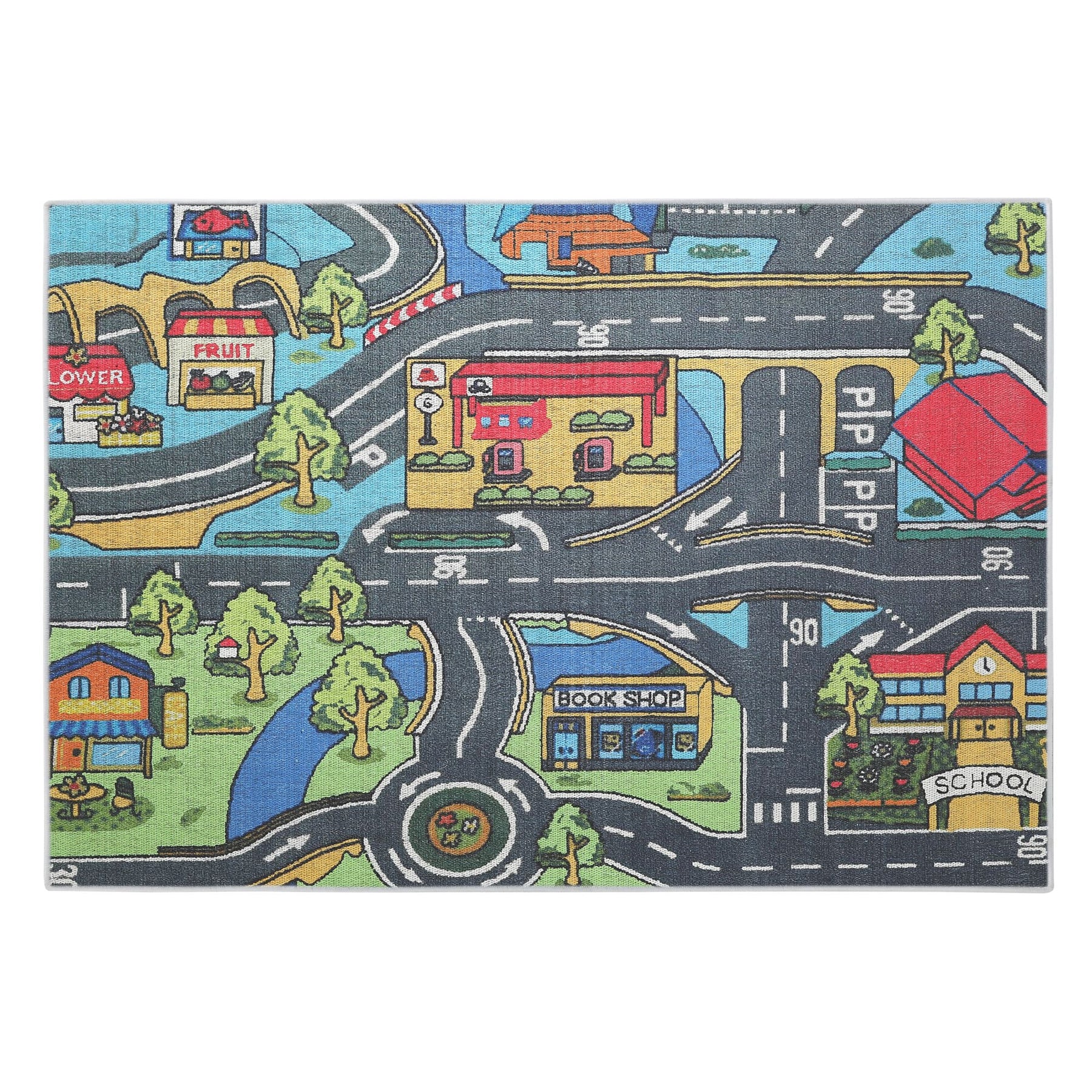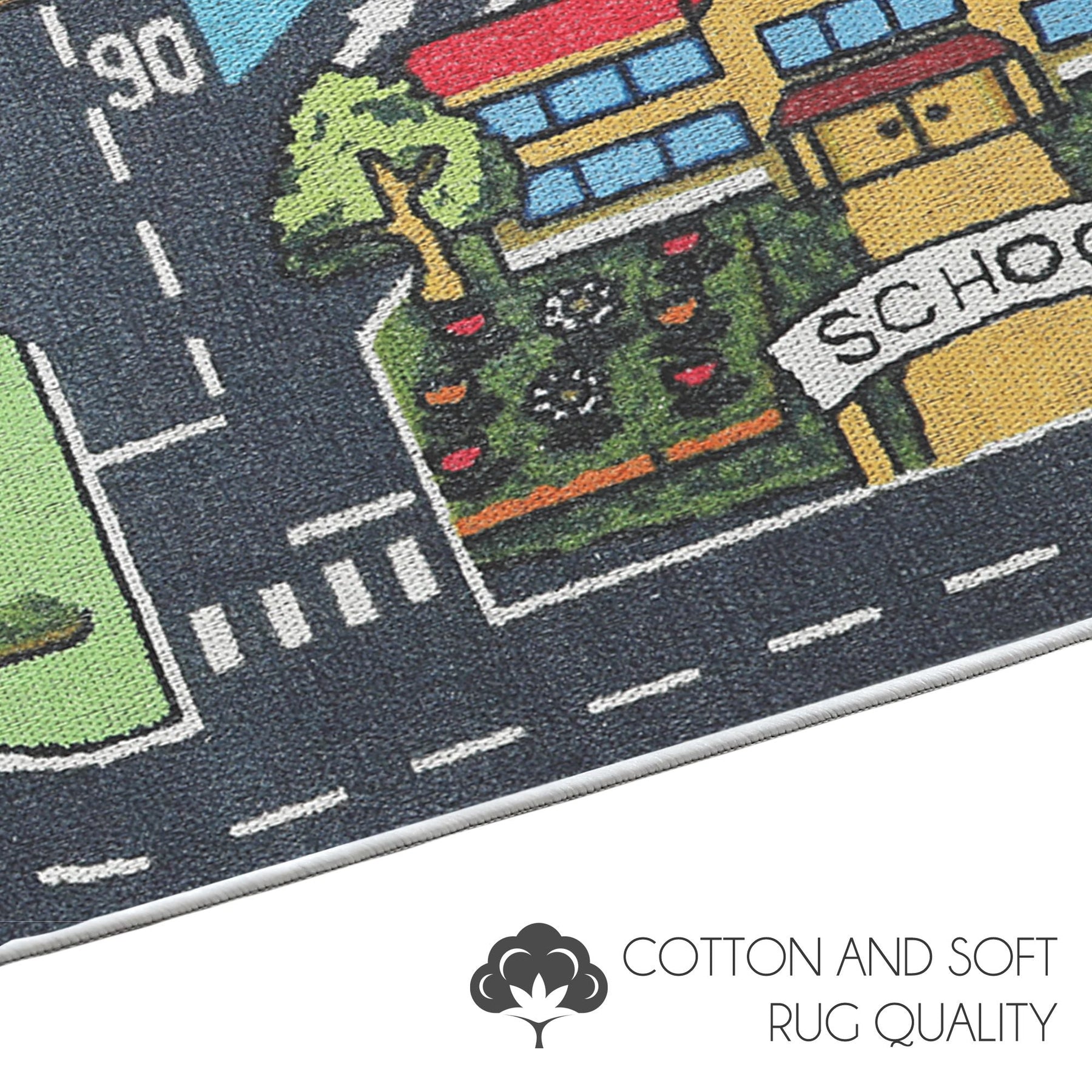 Low Pile- Non-Slip- Educational Kids Rug for Playroom |Road Pattern |39.5 x 59 Inches