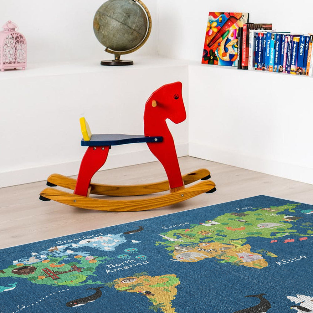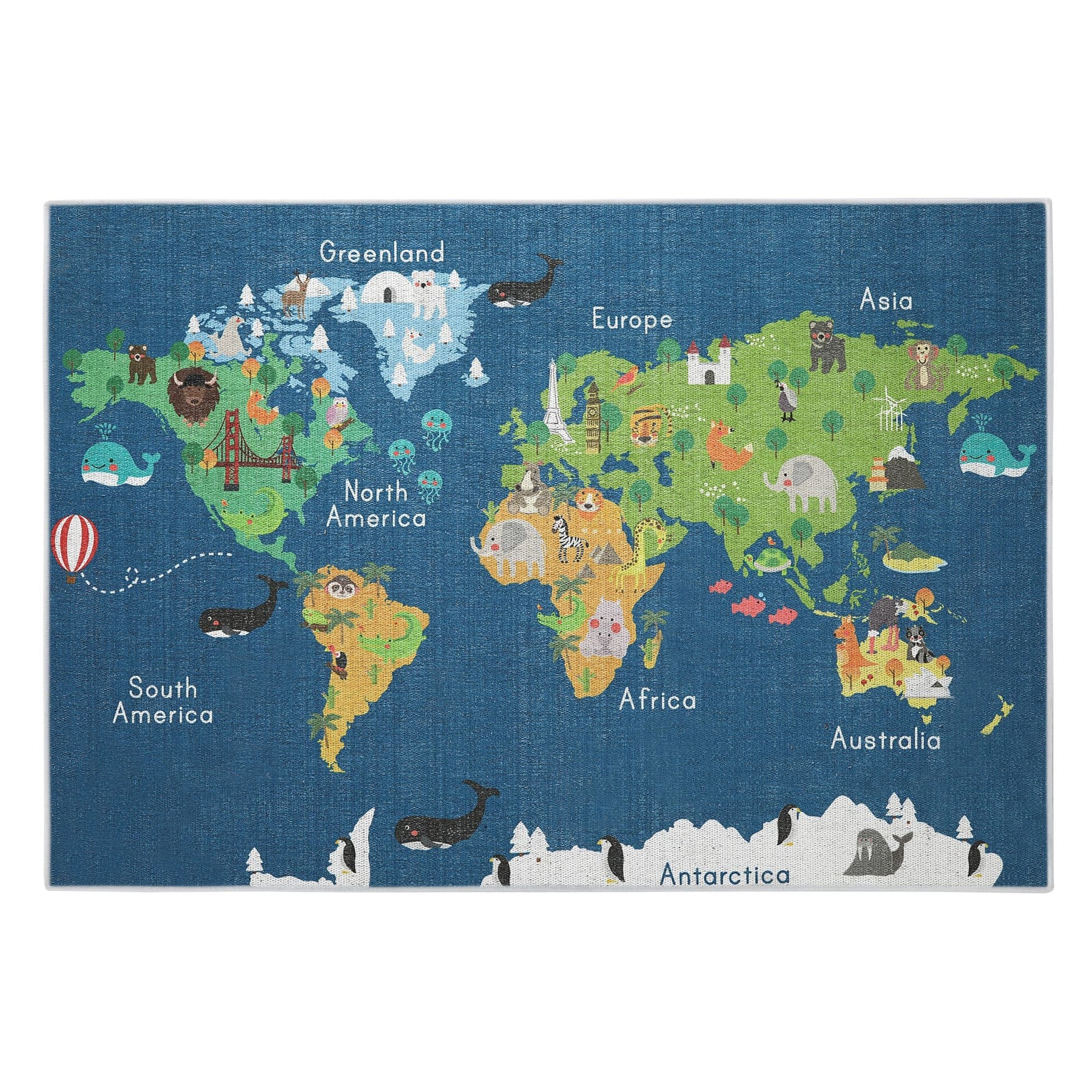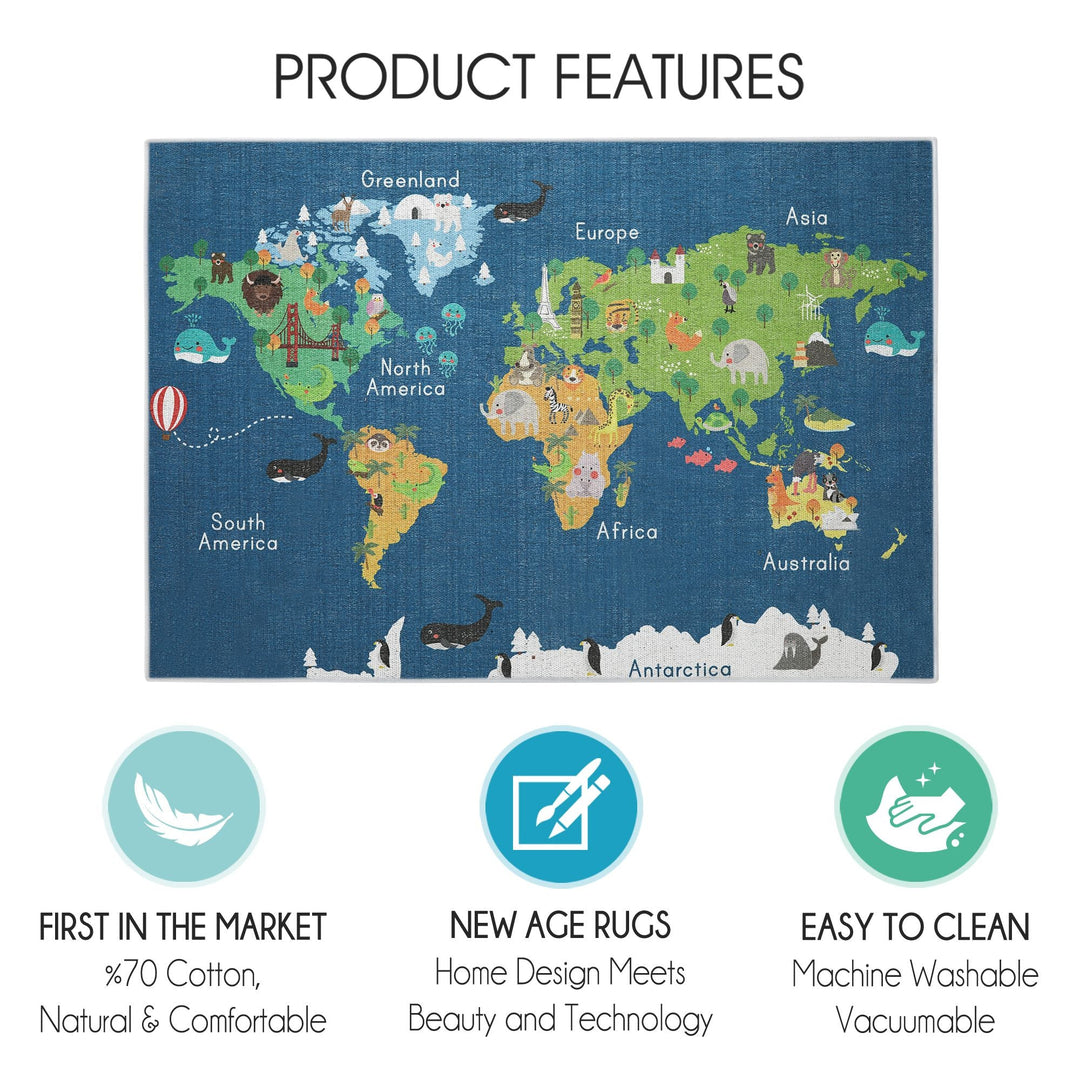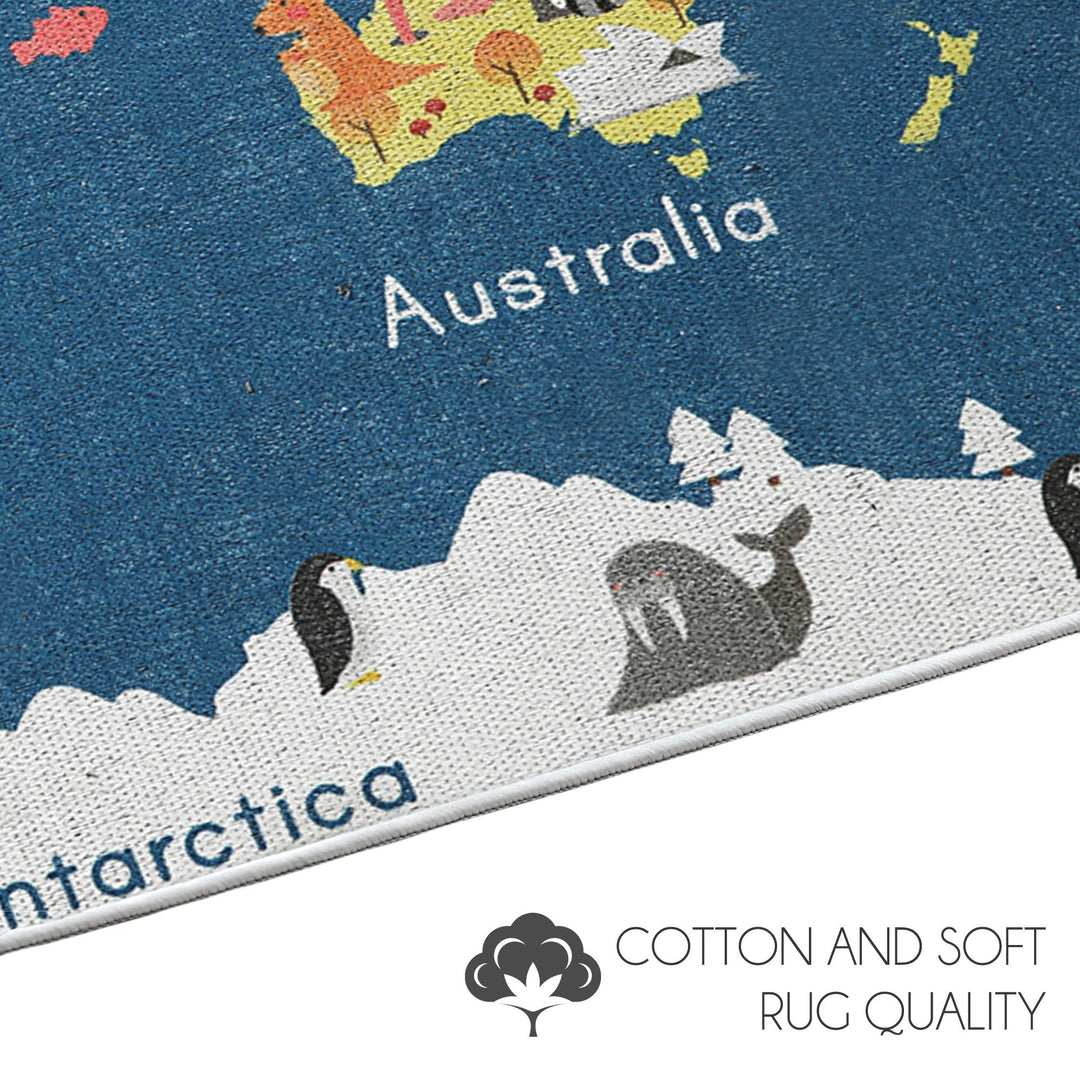 Low Pile- Non-Slip- Educational Kids Rug for Playroom |World Map Pattern |39.5 x 59 Inches