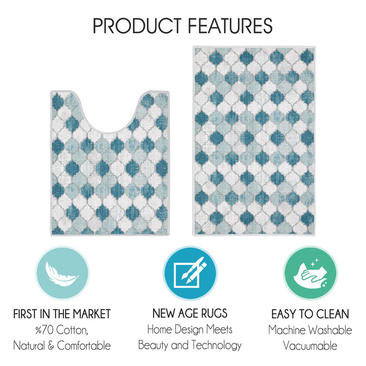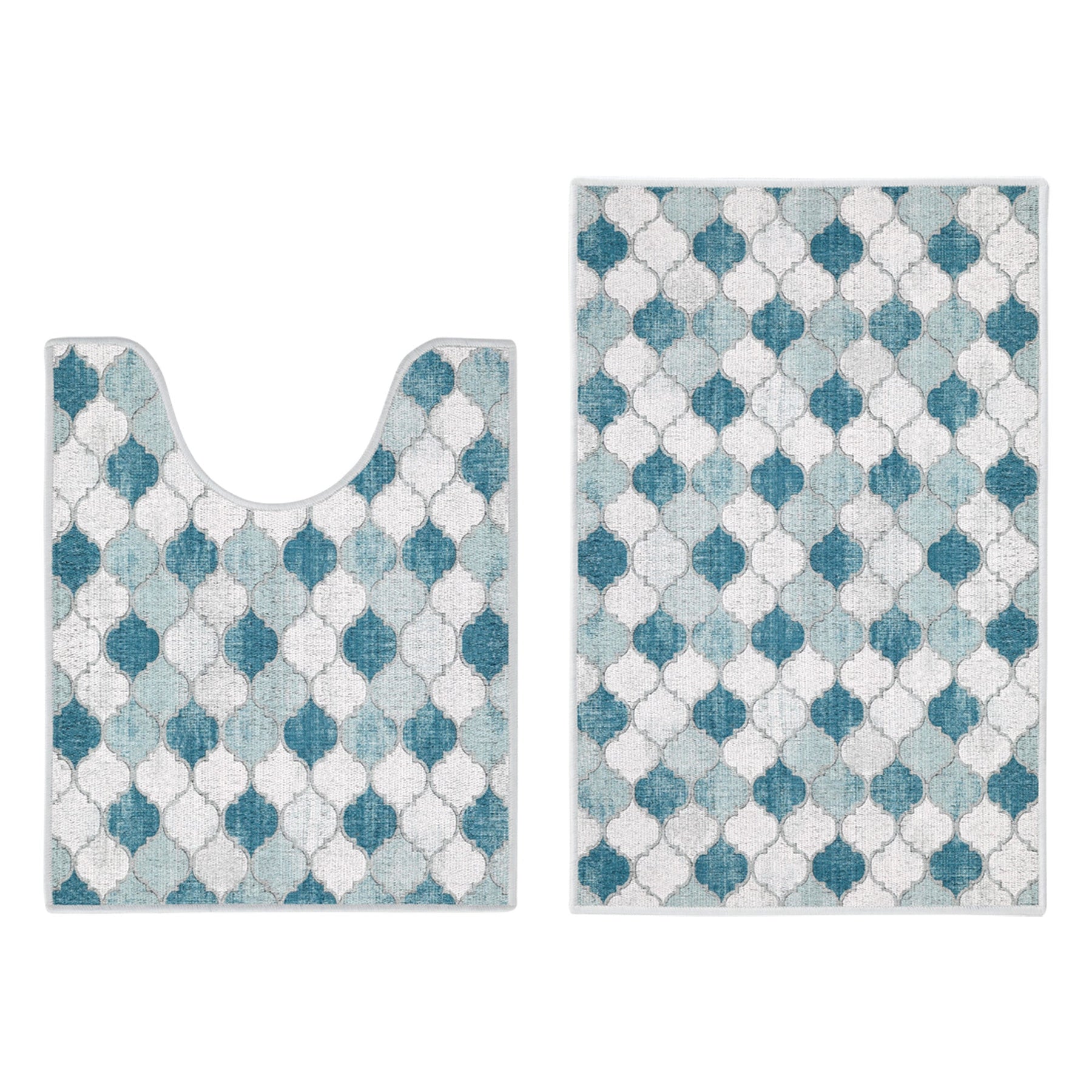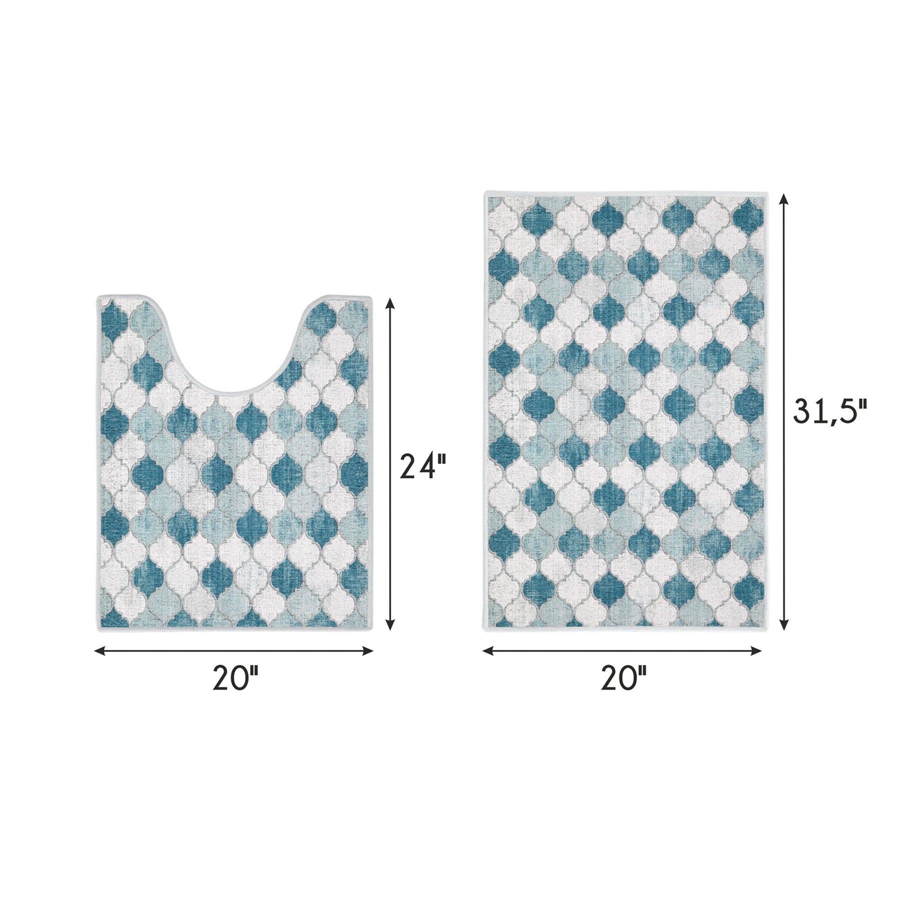 Moroccan Design 2 Piece Bathroom Rugs Set | Gray&Blue