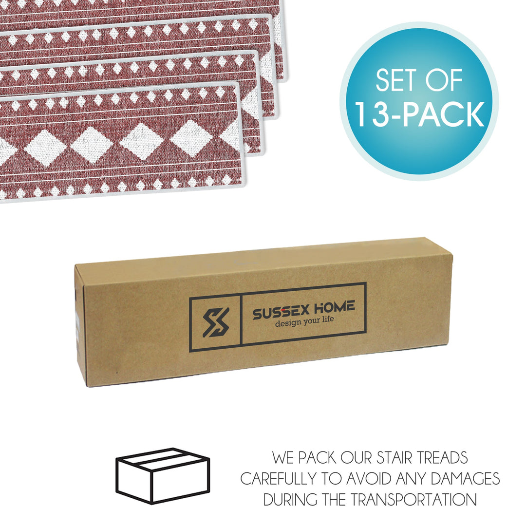 Combine the safety of your family with protection for your stairs with our carpet stair treads. With our long-lasting and comfortable stair treads in place, you'll never have to worry about unfortunate stair accidents happening to any of your family members. The Stair Treads by SussexHome will help safeguard your family from slippery and hard-edged stairs while also protecting your hardwood stairs from wear and tear. Our stair treads are available in packs of 4, 7 and 13 - any leftovers can be used for any other areas in the house that needs anti-slip protection!