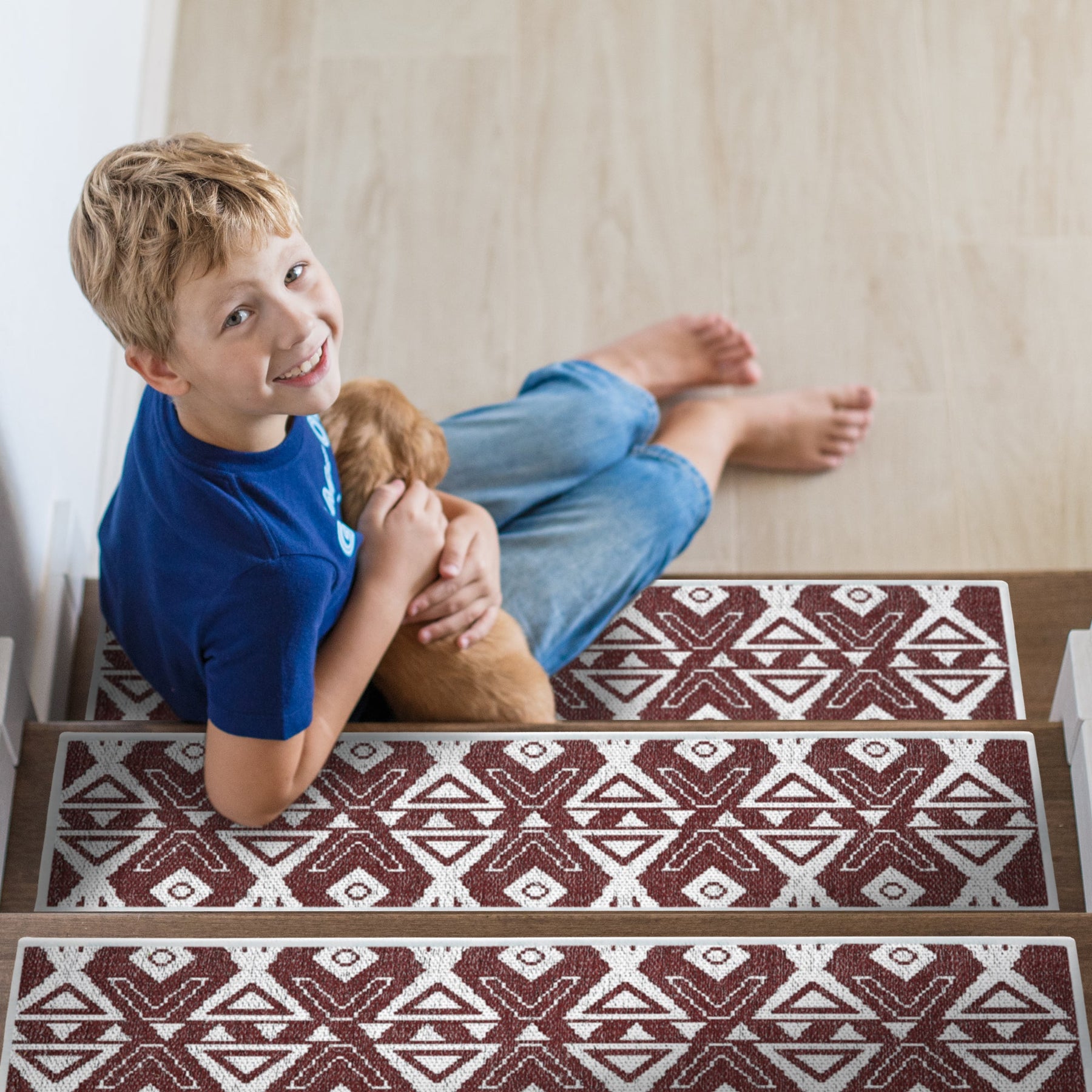 With size 9" x 28" , These family-friendly stair treads are easy to clean, making them perfect for high traffic and spill-prone areas. Carpet stair runners, treads are stain resistant and can be cleaned easily and simply with a vacuum cleaner or a washing machine without any issues wash,don't worry.