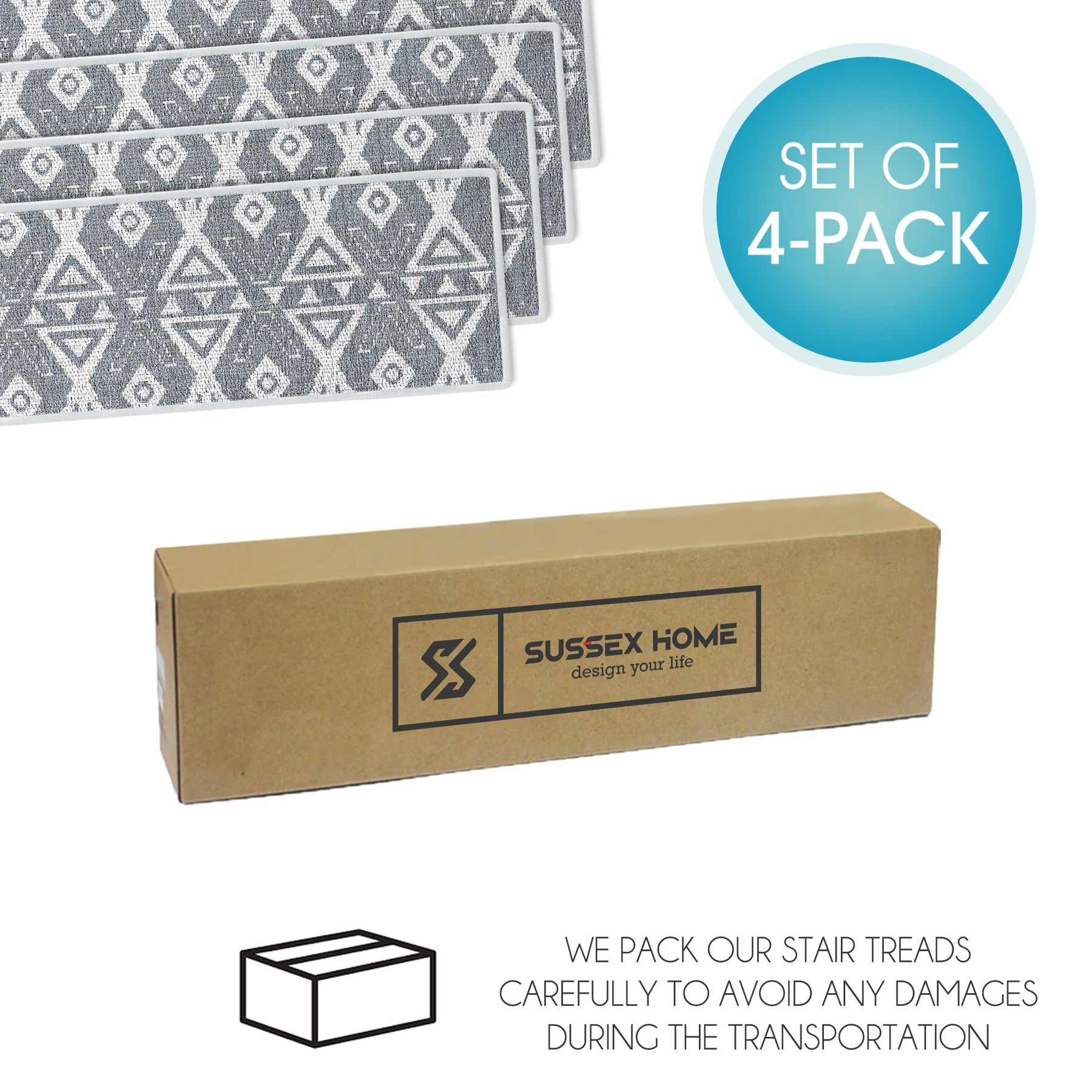 Combine the safety of your family with protection for your stairs with our carpet stair treads. With our long-lasting and comfortable stair treads in place, you'll never have to worry about unfortunate stair accidents happening to any of your family members. The Stair Treads by SussexHome will help safeguard your family from slippery and hard-edged stairs while also protecting your hardwood stairs from wear and tear. Our stair treads are available in packs of 4, 7 and 13 - any leftovers can be used for any other areas in the house that needs anti-slip protection!