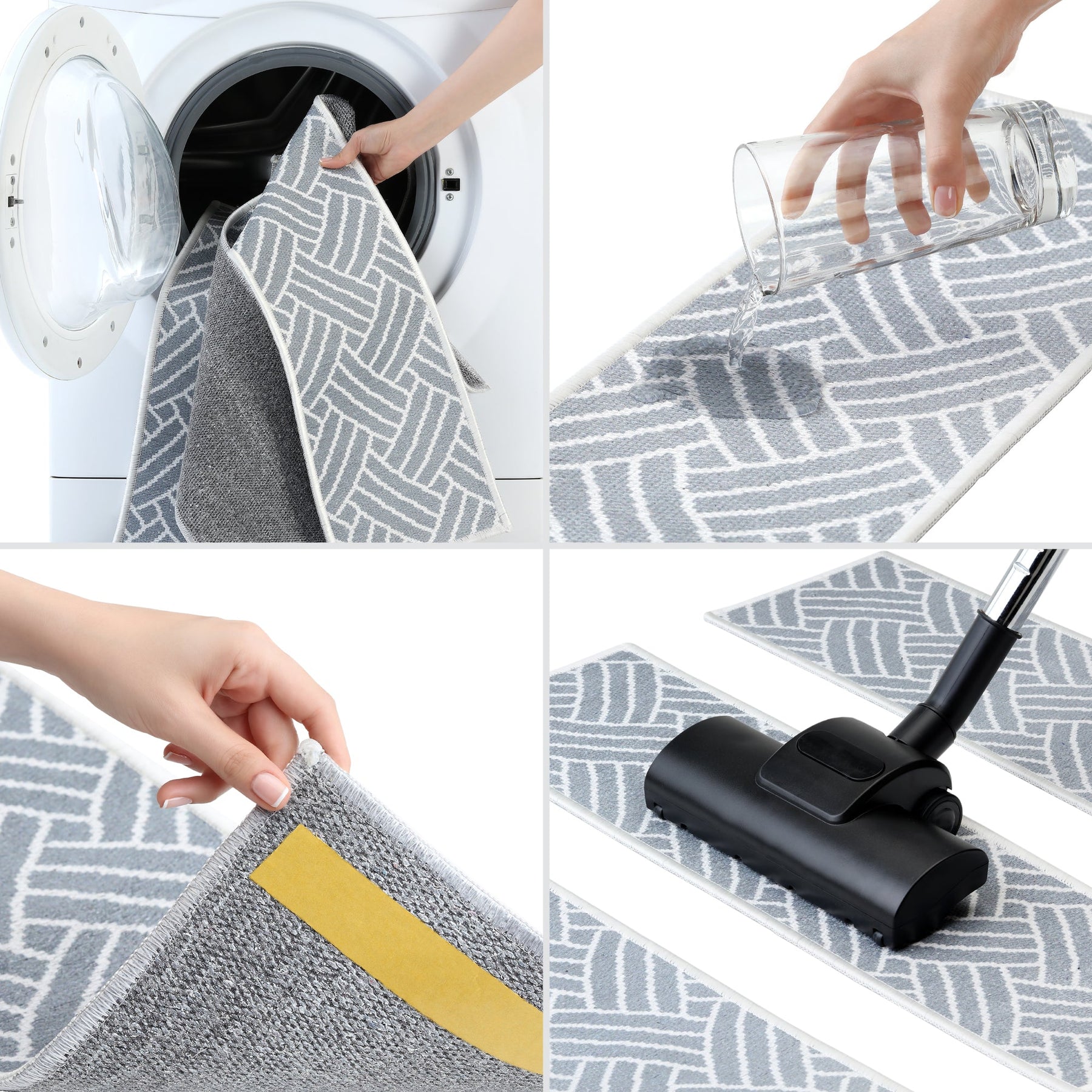 With size 9" x 28" , These family-friendly stair treads are easy to clean, making them perfect for high traffic and spill-prone areas. Carpet stair runners, treads are stain resistant and can be cleaned easily and simply with a vacuum cleaner or a washing machine without any issues wash,don't worry.
