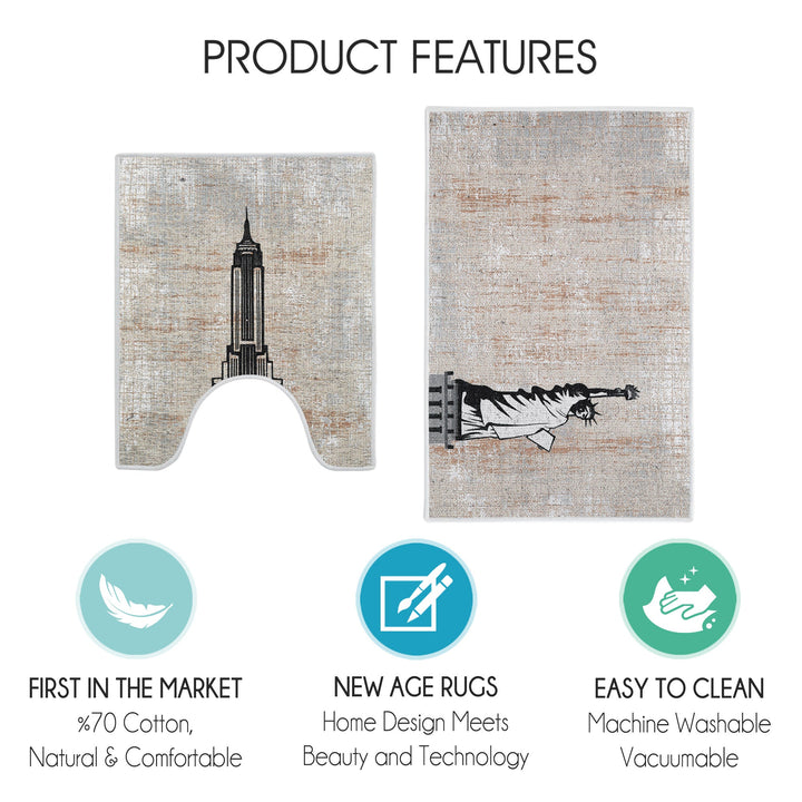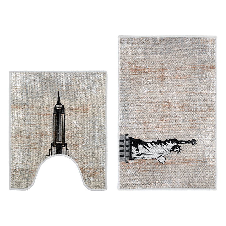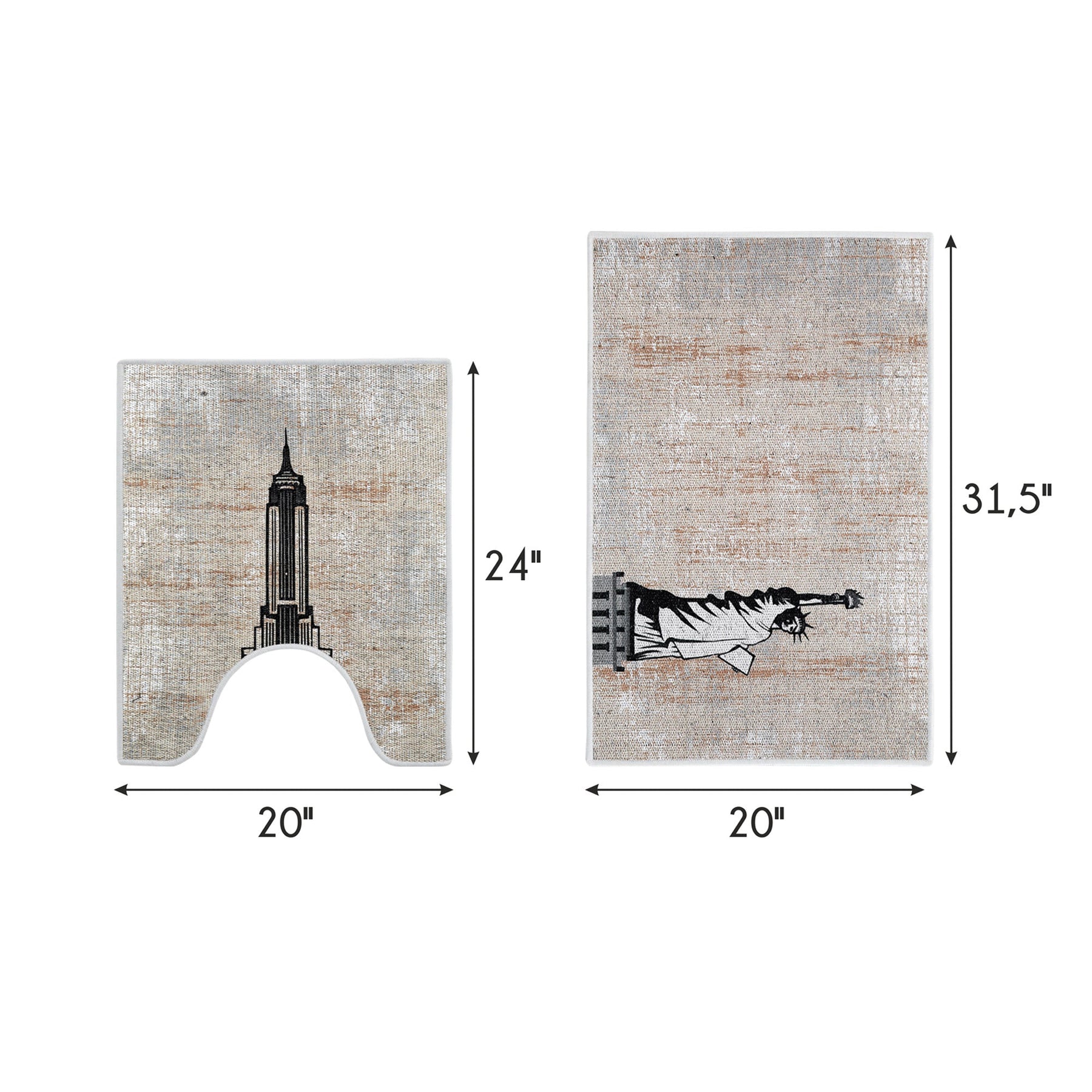 New York Design 2 Piece Bathroom Rugs Set | Multicolor