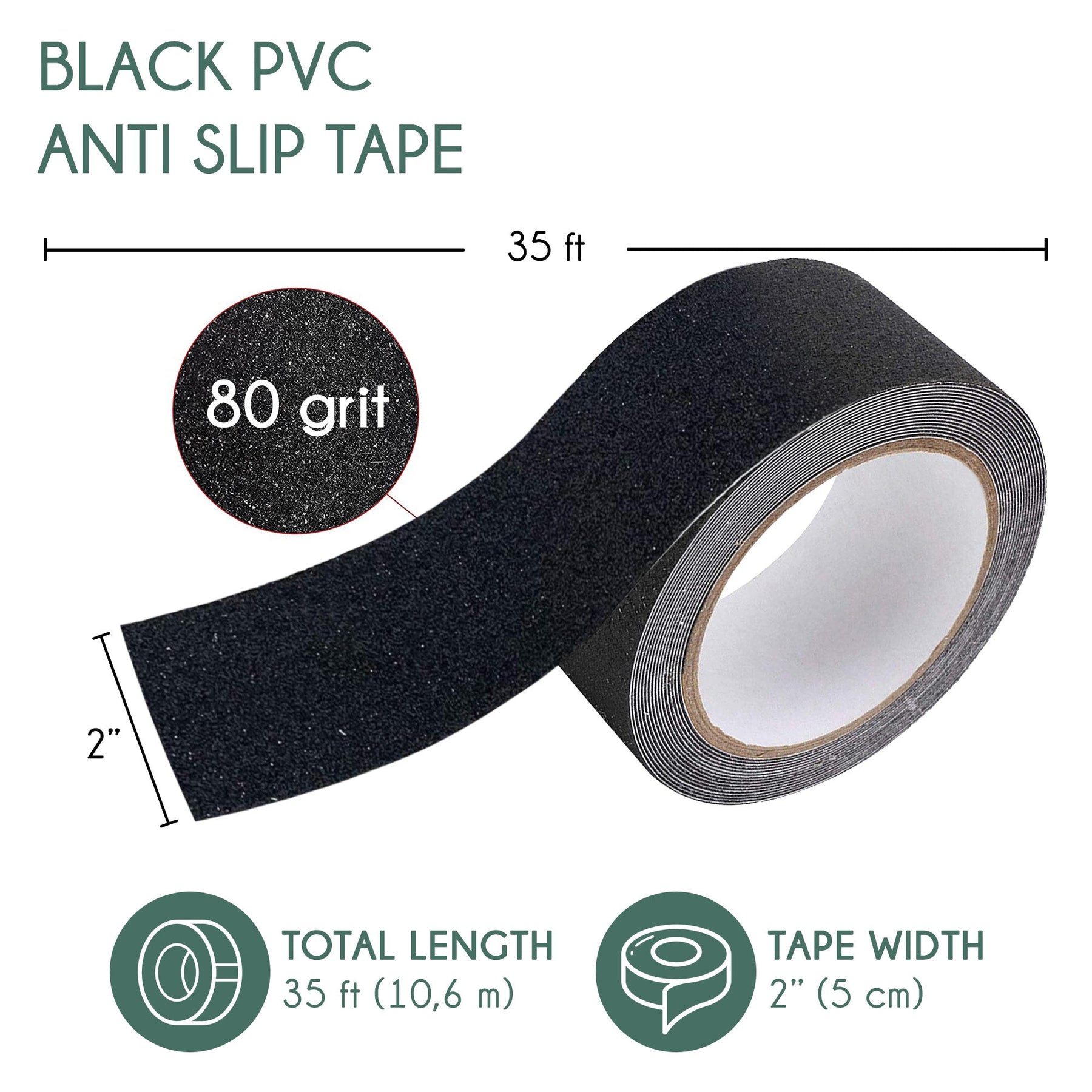 Non-Slip Grip Tape - Waterproof Non-Skid Adhesive Tape For Stairs - 2"X35' Roll, Black