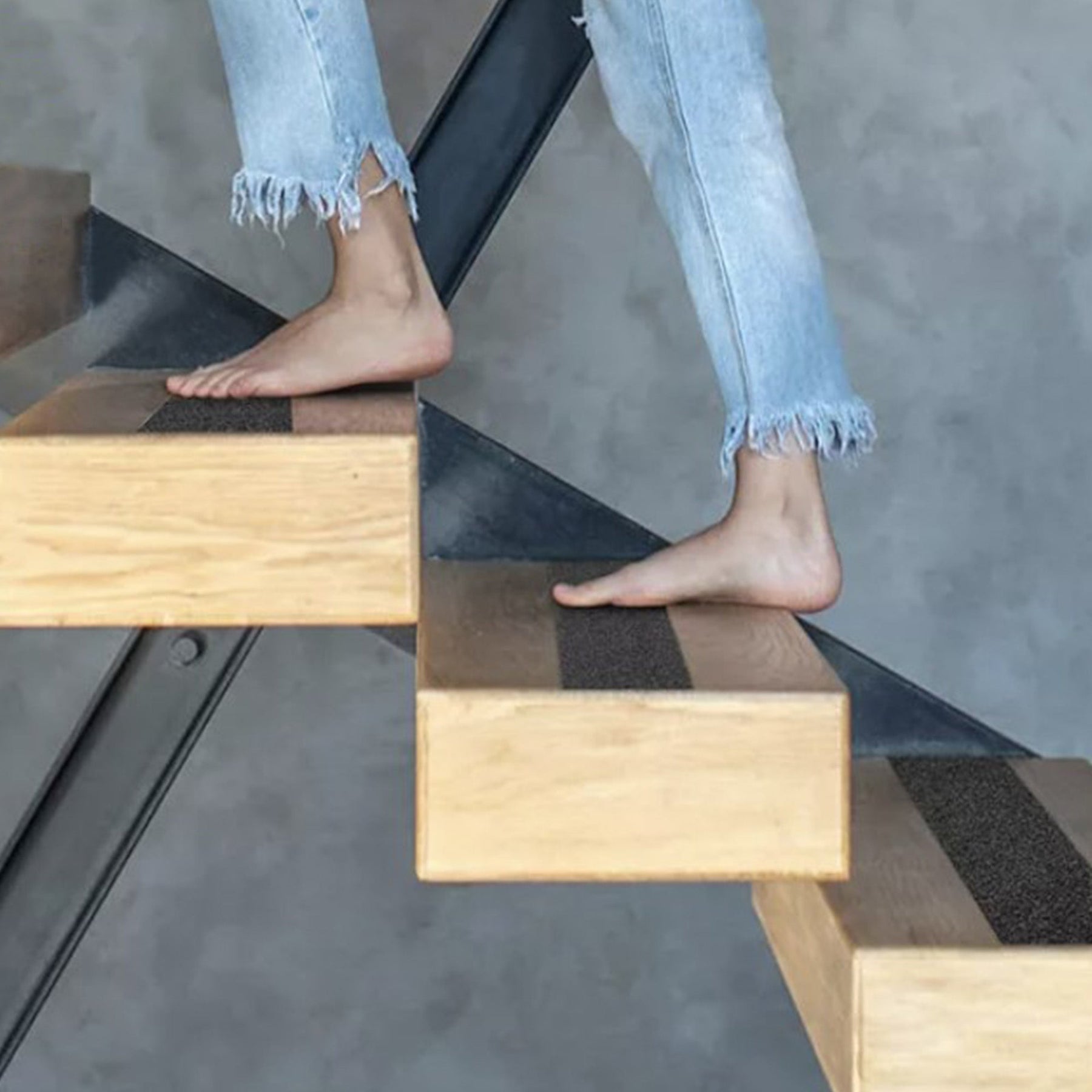 Our non-slip tapes come in two variants, black and clear. The black PVC tape has a textured surface made of corundum, silicon carbide, and quartz, while the clear PEVA tape is smoother and transparent, so it'll blend against the appearance of your floors. Both are comfortable to walk on even while barefoot.