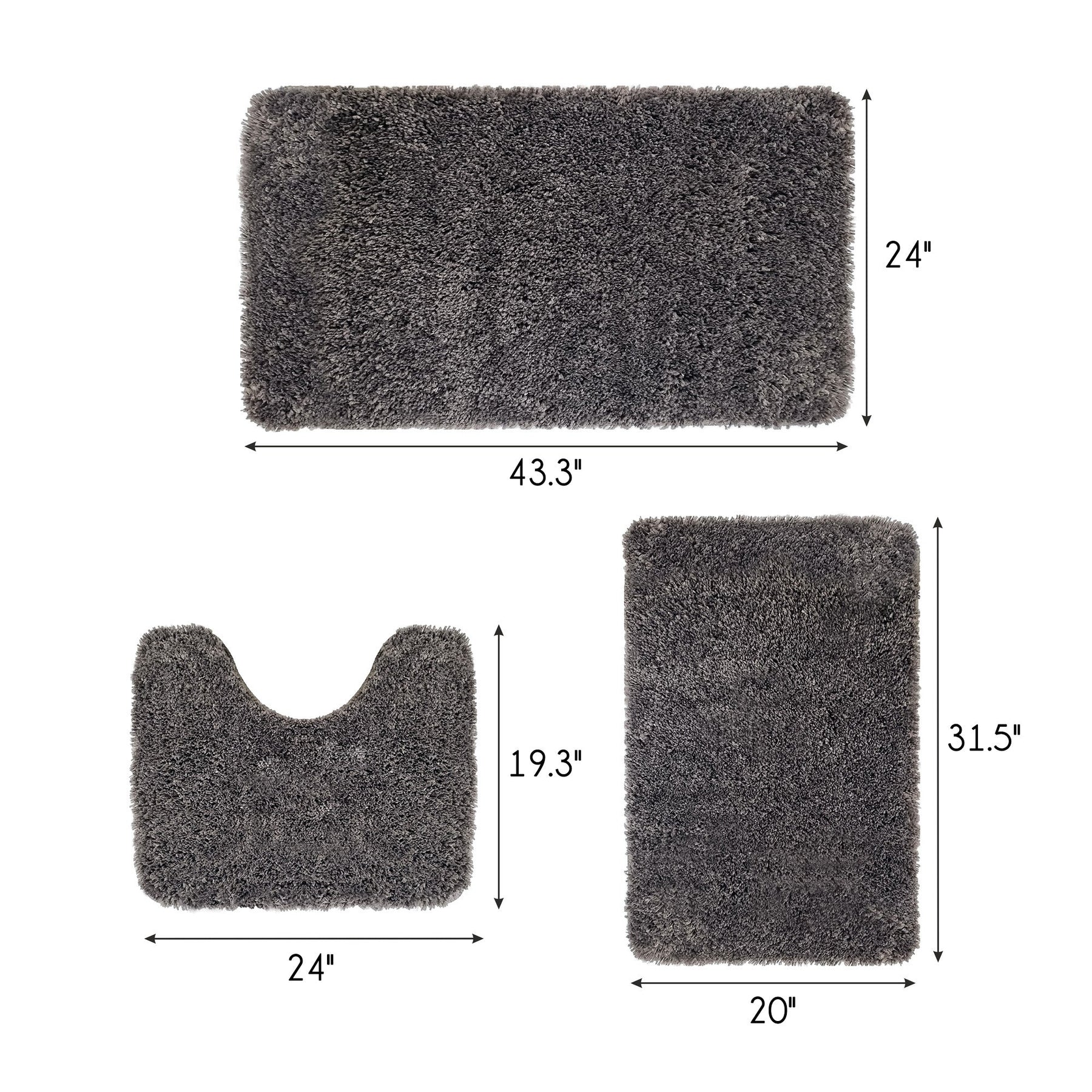 Solid Gray Bathroom Rugs Sets, Shower Rugs with Toilet Rugs U Shaped |Set of 3