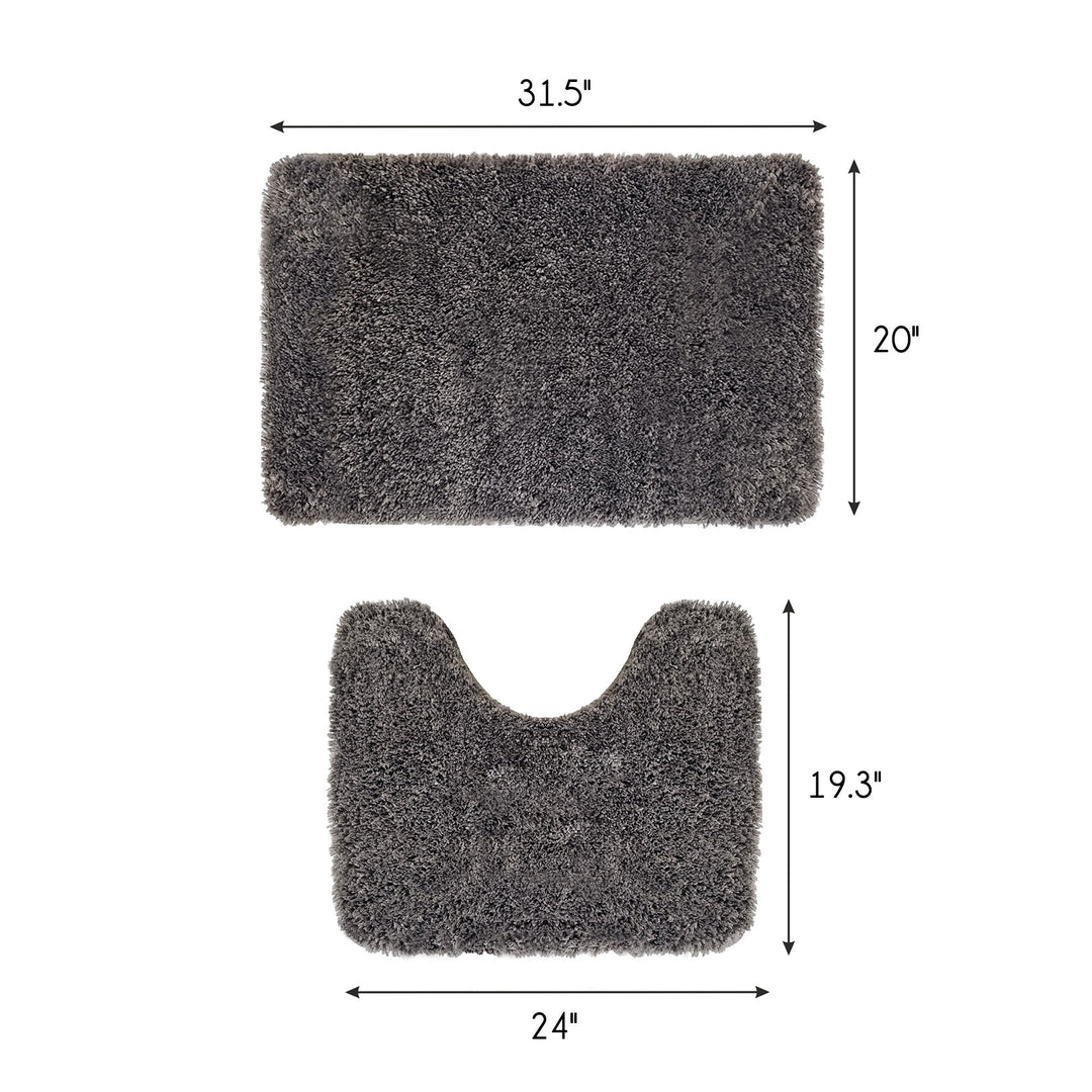 Solid Gray Bathroom Rugs Sets, Shower Rugs with Toilet Rugs U Shaped |U Set