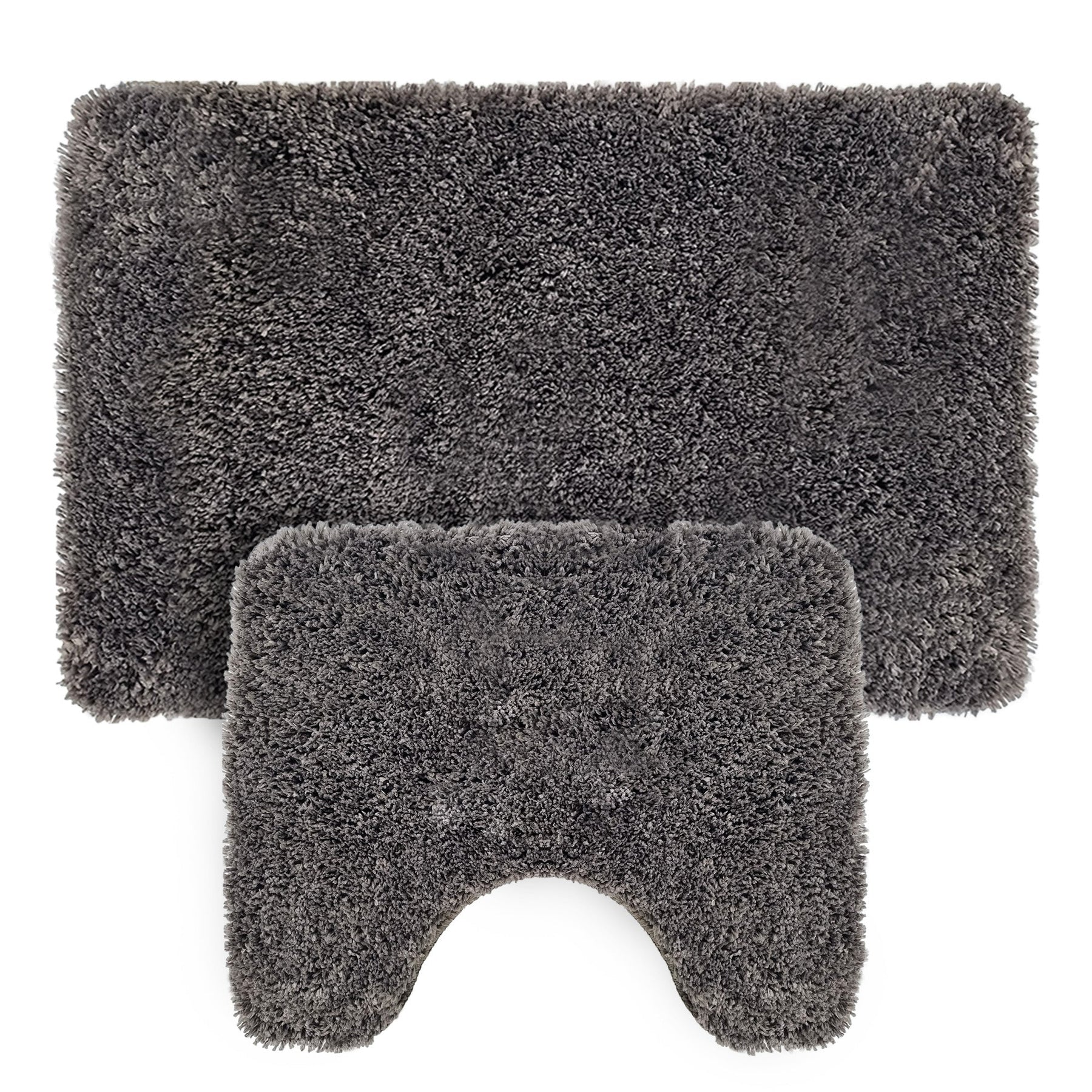 Solid Gray Bathroom Rugs Sets, Shower Rugs with Toilet Rugs U Shaped |U Set