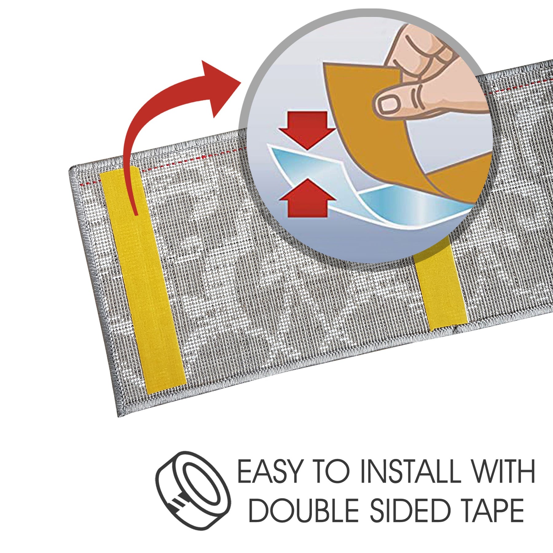 • KID & PET FRIENDLY ****** Our elegantly designed and colored stair treads are made from original area rug and 100% POLYPROPYLENE to prevent shedding, and will tie together any fashionable space. Kids and pet friendly.