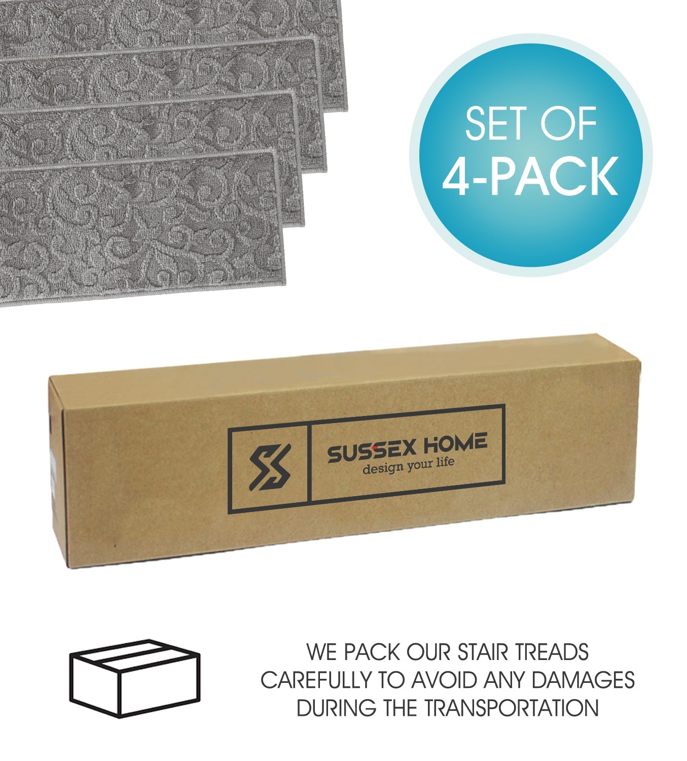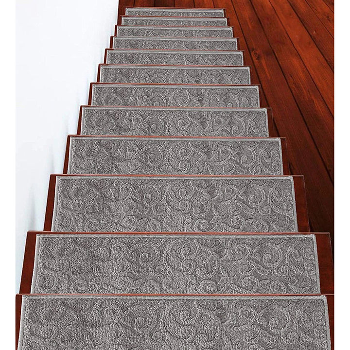 • KID & PET FRIENDLY ****** Our elegantly designed and colored stair treads are made from original area rug and 100% POLYPROPYLENE to prevent shedding, and will tie together any fashionable space. Kids and pet friendly.