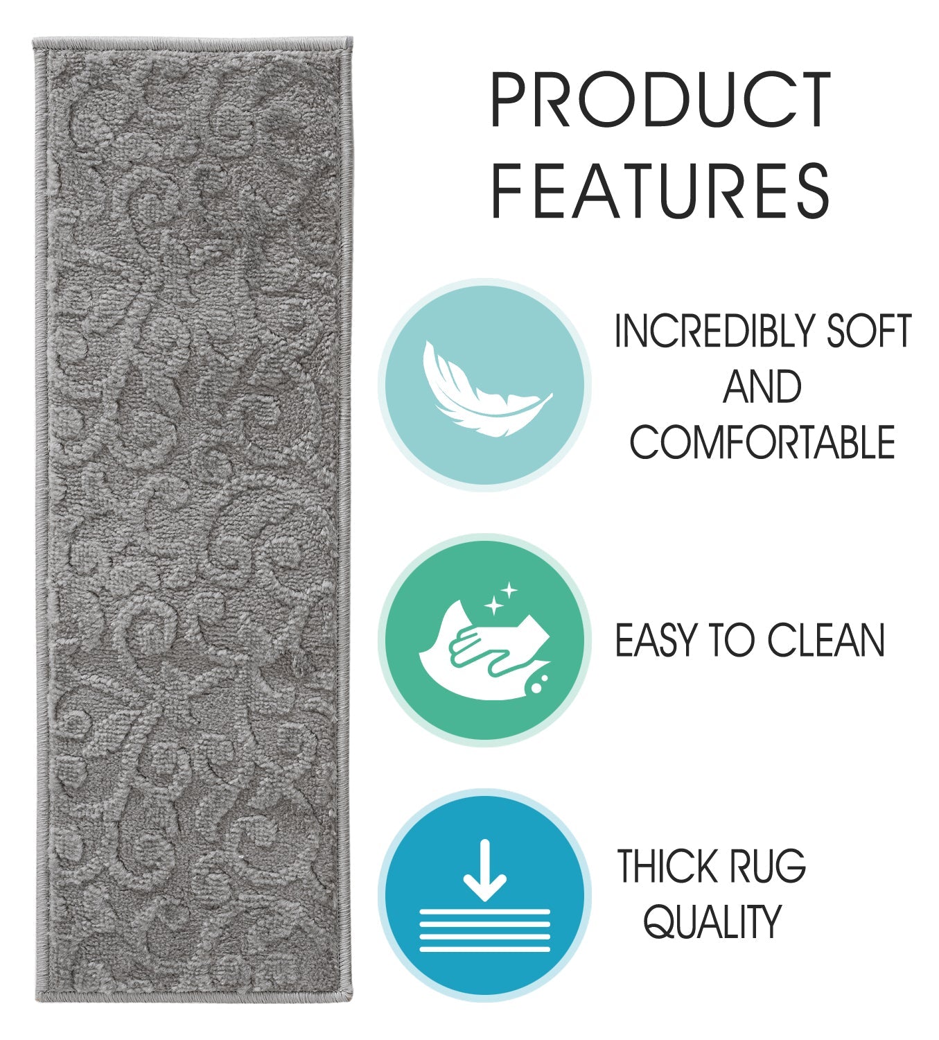 Stair Treads Rug 9"x28" Leaves Collection | Gray