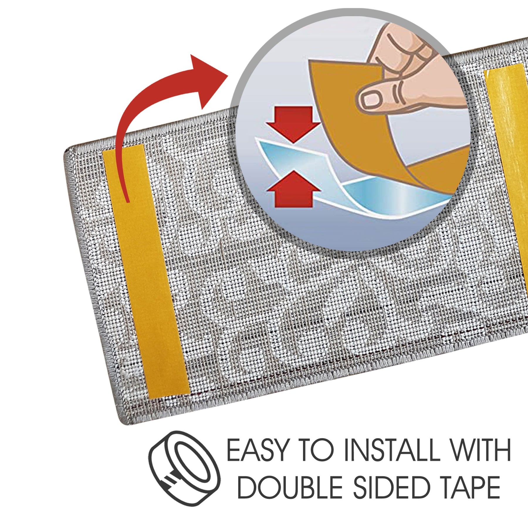 • APPLIED DOUBLE SIDED TAPE ****** Our carpet tape provides best results with rug anchoring solutions without damaging the rug or the floor. Designed to bond to rough or smooth surfaces. It also doesn't leave any sticky residue behind!
