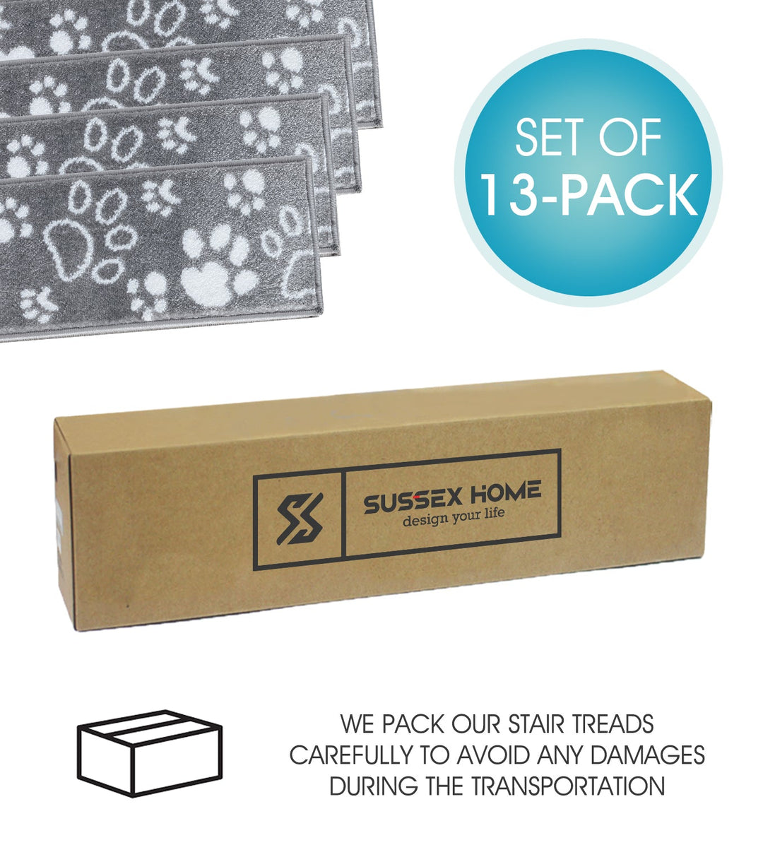 • KID & PET FRIENDLY ****** Our elegantly designed and colored stair treads are made from original area rug and 100% POLYPROPYLENE to prevent shedding, and will tie together any fashionable space. Kids and pet friendly.