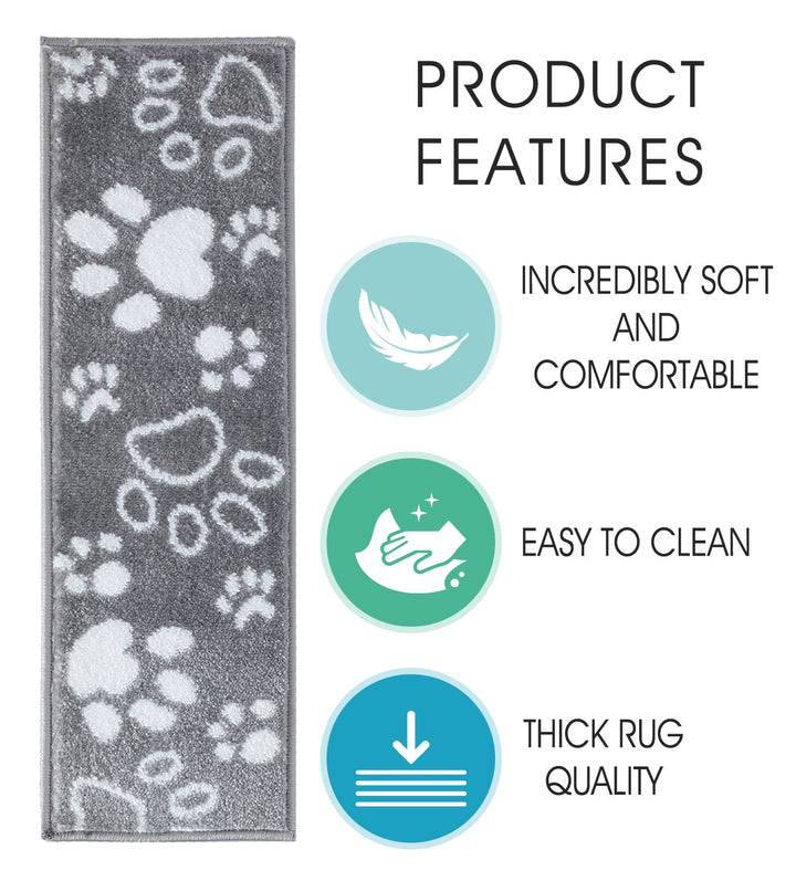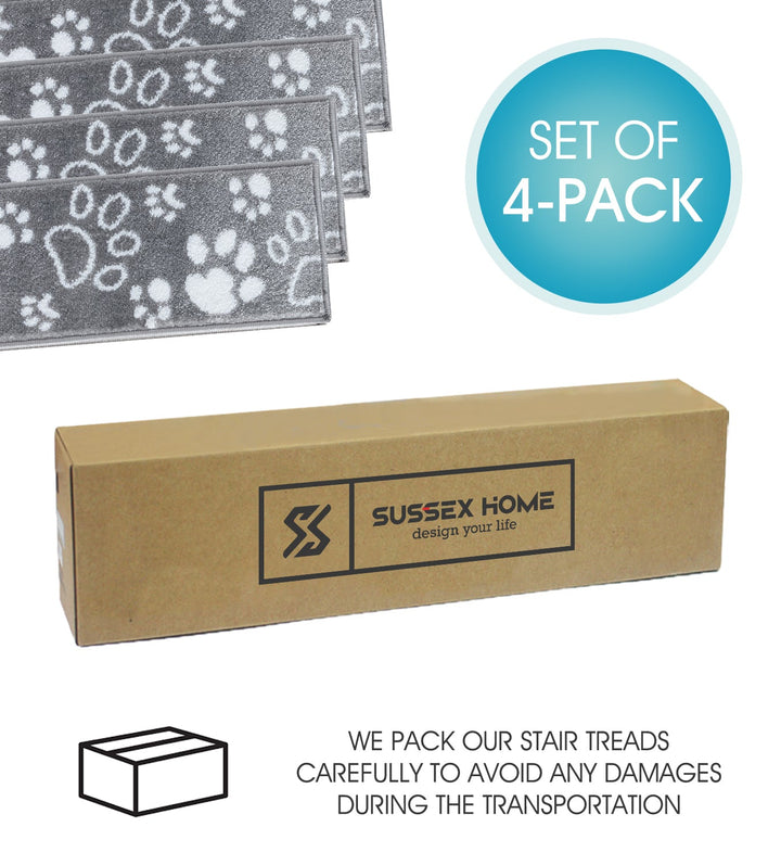 Stair Treads Rug 9"x28" Paw Collection | Gray & White