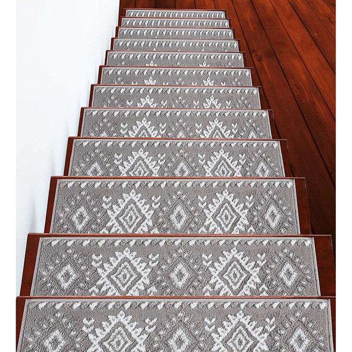 • KID & PET FRIENDLY ****** Our elegantly designed and colored stair treads are made from original area rug and 100% POLYPROPYLENE to prevent shedding, and will tie together any fashionable space. Kids and pet friendly.