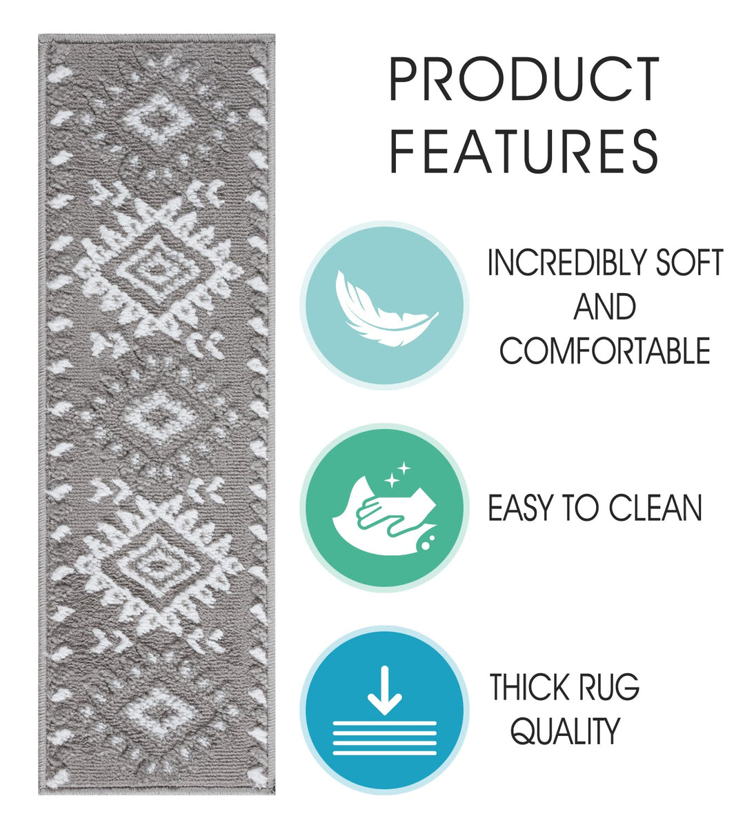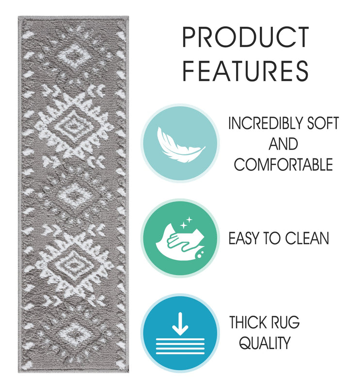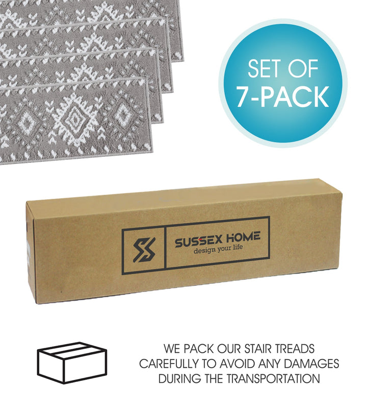 Stair Treads Rug 9"x28" Traditional Collection | Gray & White
