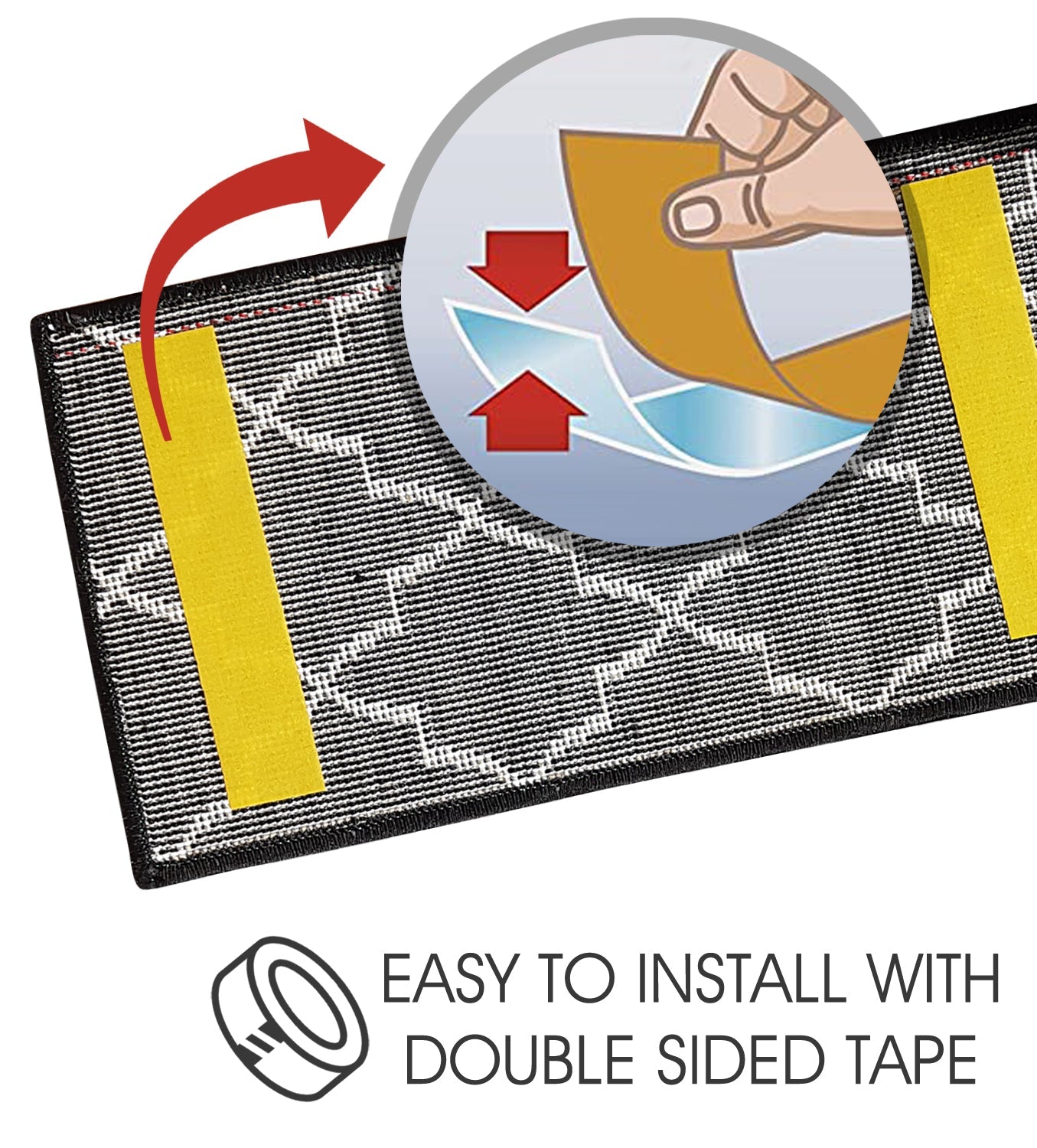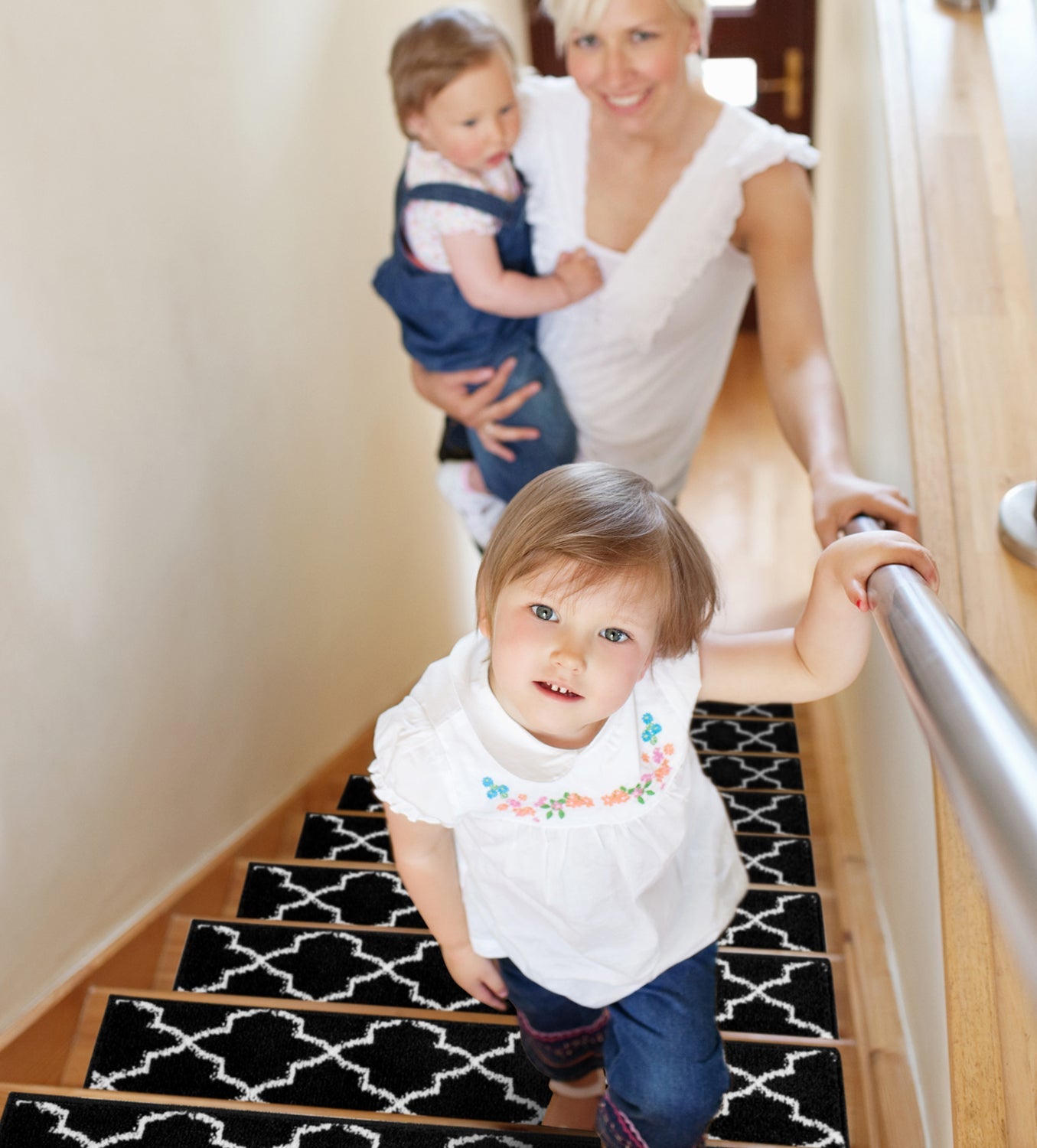 • KID & PET-FRIENDLY ****** Our elegantly designed and colored stair treads are made from original area rug and 100% POLYPROPYLENE to prevent shedding, and will tie together any fashionable space. Kids and pet-friendly.
