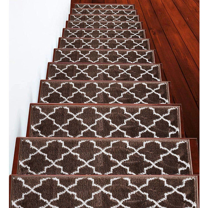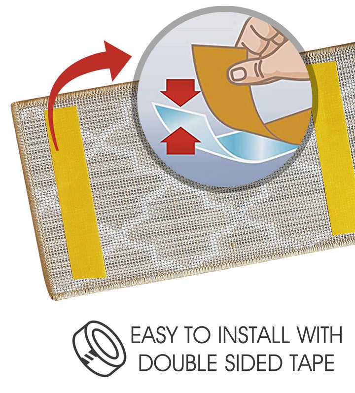 • KID & PET FRIENDLY ****** Our elegantly designed and colored stair treads are made from original area rug and 100% POLYPROPYLENE to prevent shedding, and will tie together any fashionable space. Kids and pet friendly.