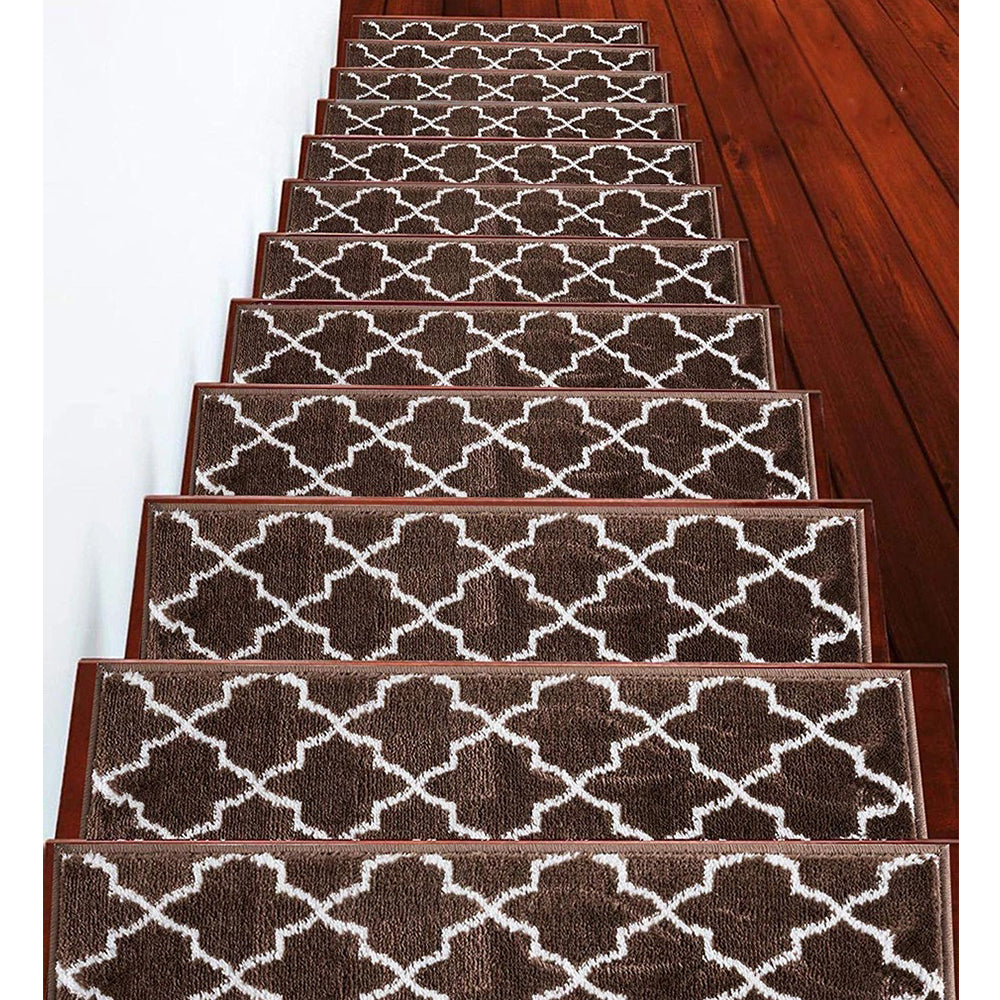 • KID & PET FRIENDLY ****** Our elegantly designed and colored stair treads are made from original area rug and 100% POLYPROPYLENE to prevent shedding, and will tie together any fashionable space. Kids and pet friendly.
