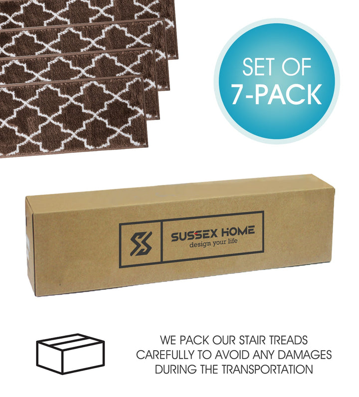 Stair Treads Rug 9"x28" Trellisville Collection | Brown & White