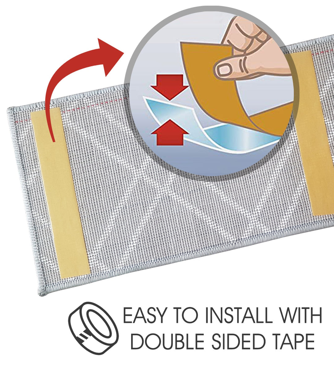 • APPLIED DOUBLE SIDED TAPE ****** Our carpet tape provides best results with rug anchoring solutions without damaging the rug or the floor. Designed to bond to rough or smooth surfaces. It also doesn't leave any sticky residue behind!