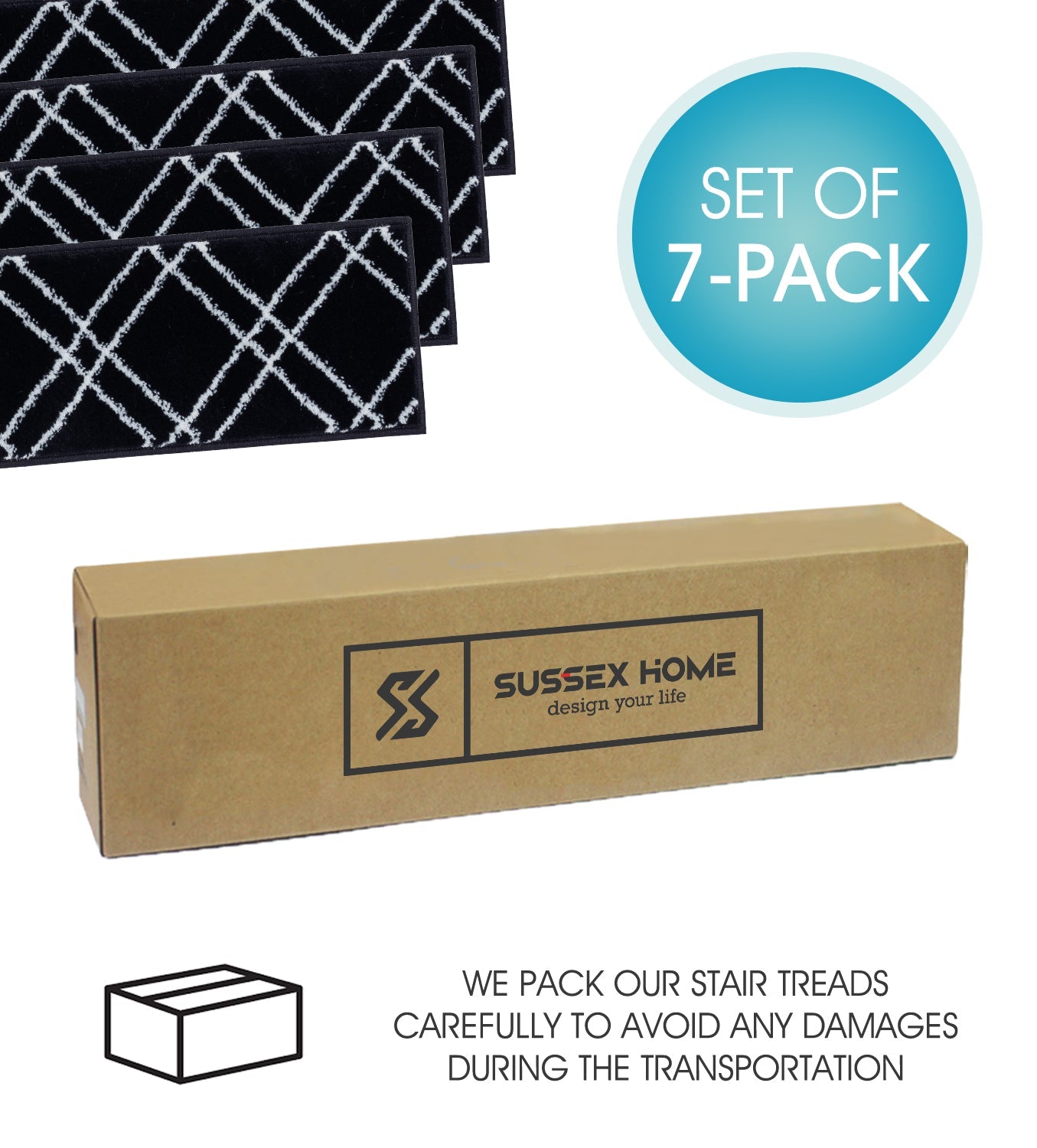 • KID & PET FRIENDLY****** Our elegantly designed and colored stair treads are made from original area rug and 100% POLYPROPYLENE to prevent shedding, and will tie together any fashionable space. Kids and pet friendly.