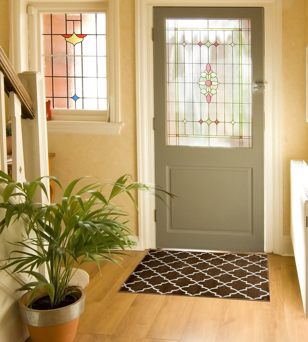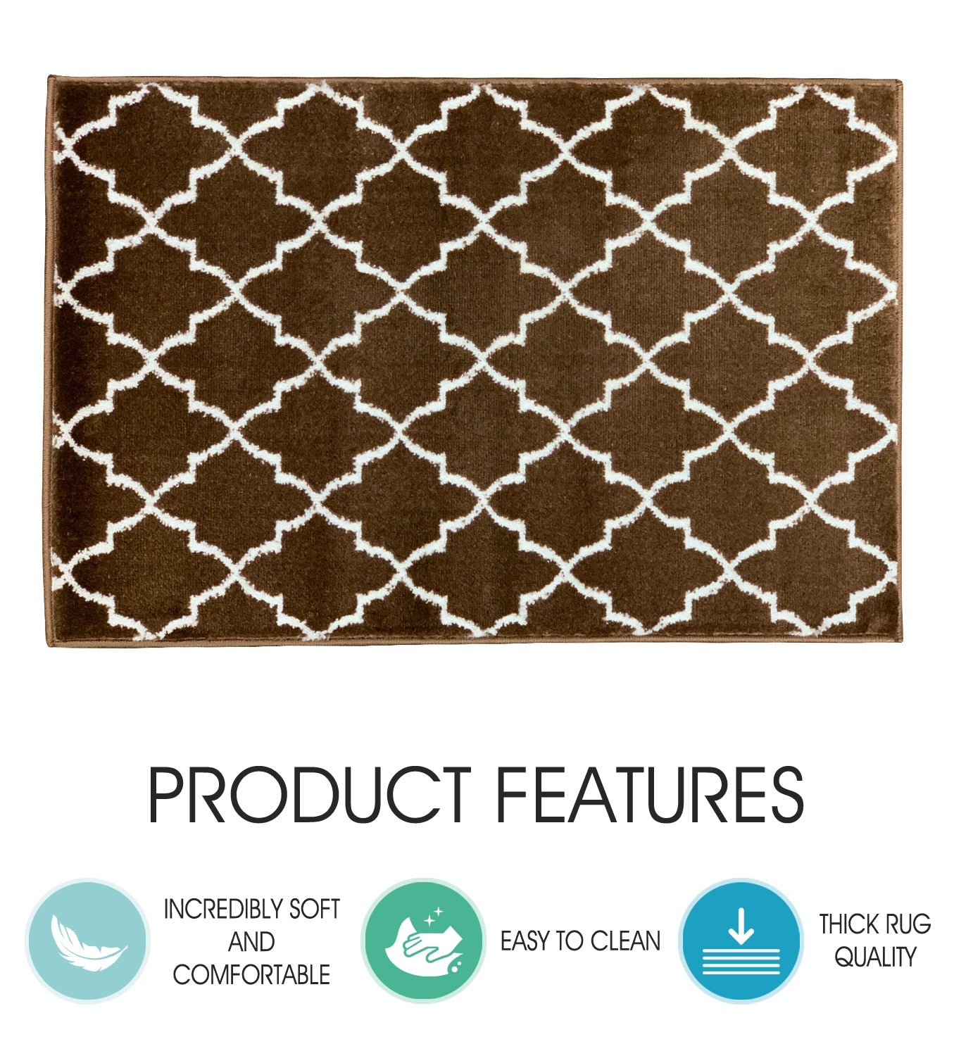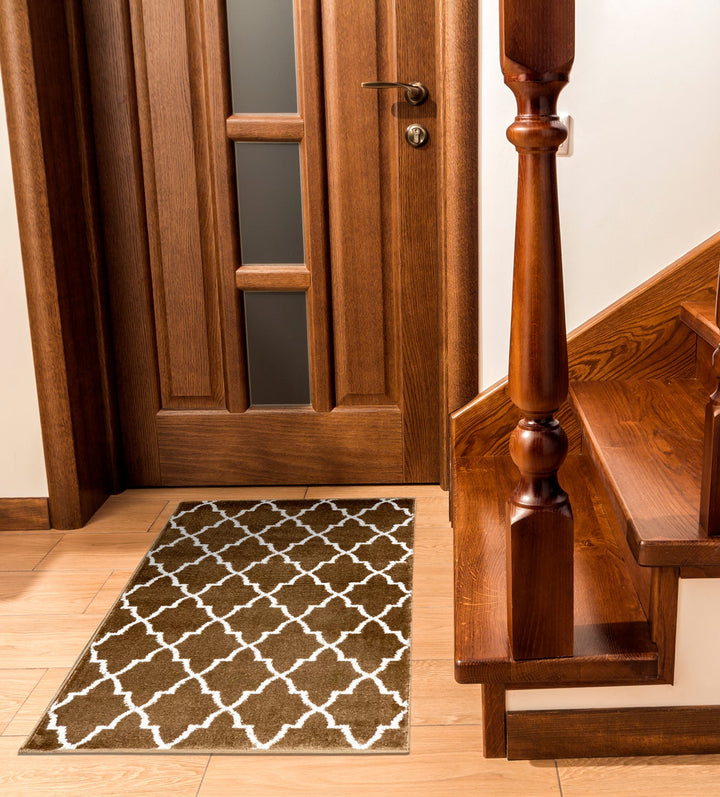 Sussex Home, Landing Rug, Slip Resistant Indoor Carpets Includes Adhesive Tape 2' x 3'-Trellisville Collection |Brown&White