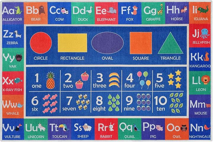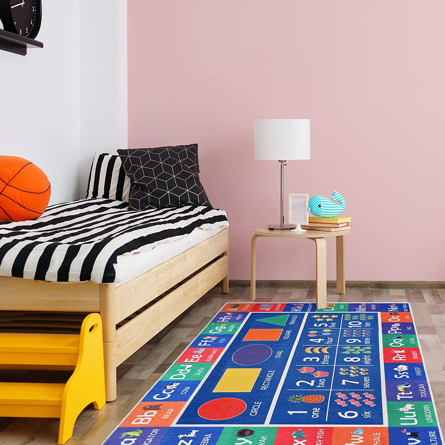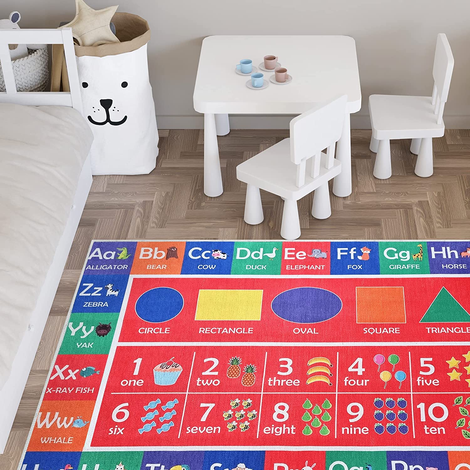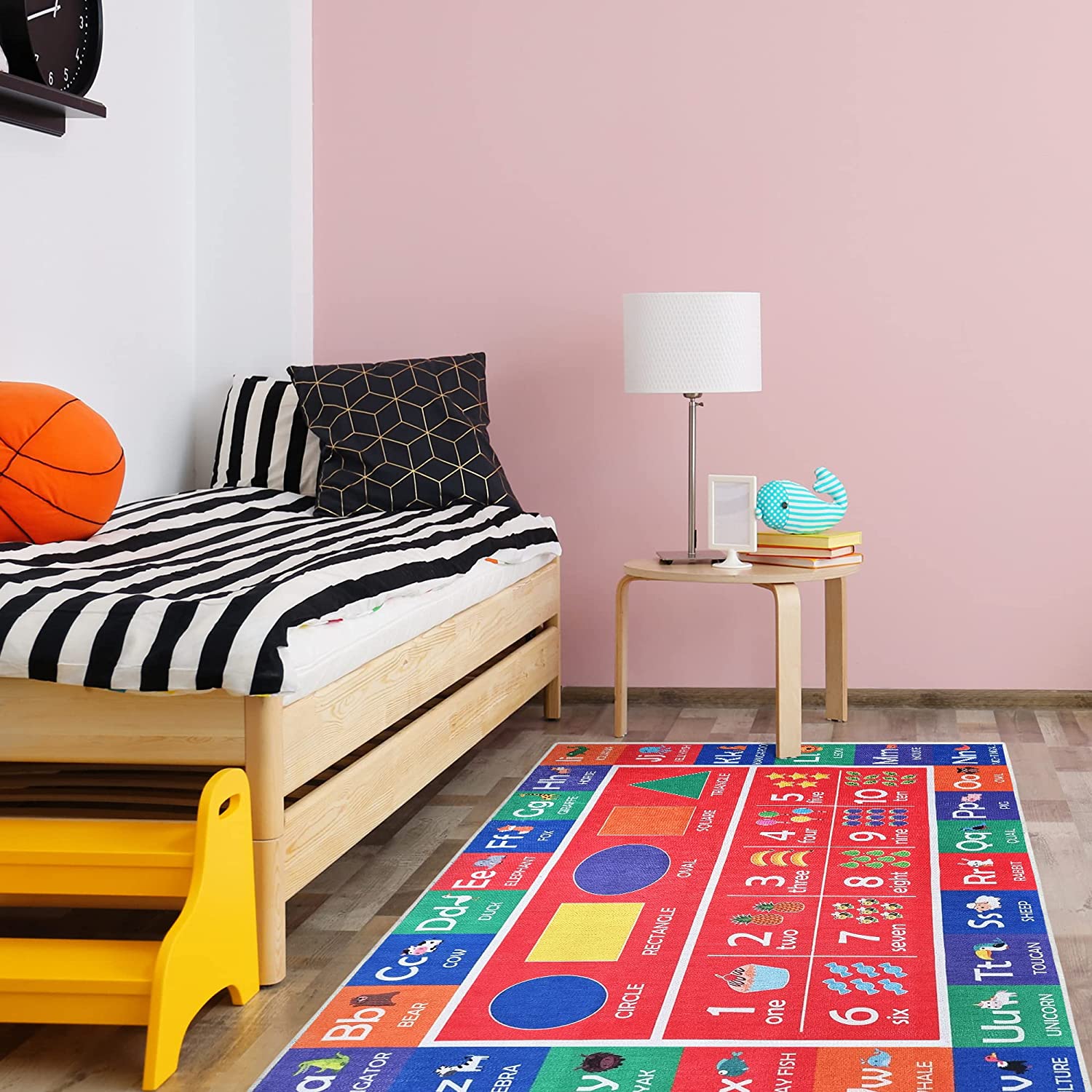 Sussex Home Low Pile Kids Rug for Playroom - Washable Cotton Educational Rug for Kids Room - 39.5 x 59 Inches - Play Rug Pattern