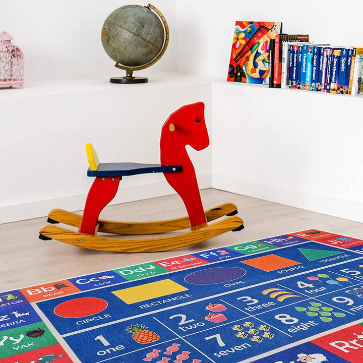 A great addition to any home, this flat-weave learning rug for kids rooms lends itself