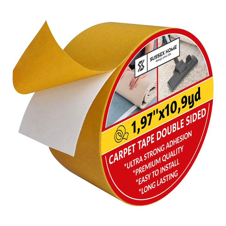 Sussexhome Double Sided Carpet Tape - 1.97”X10,9 yd Roll, White