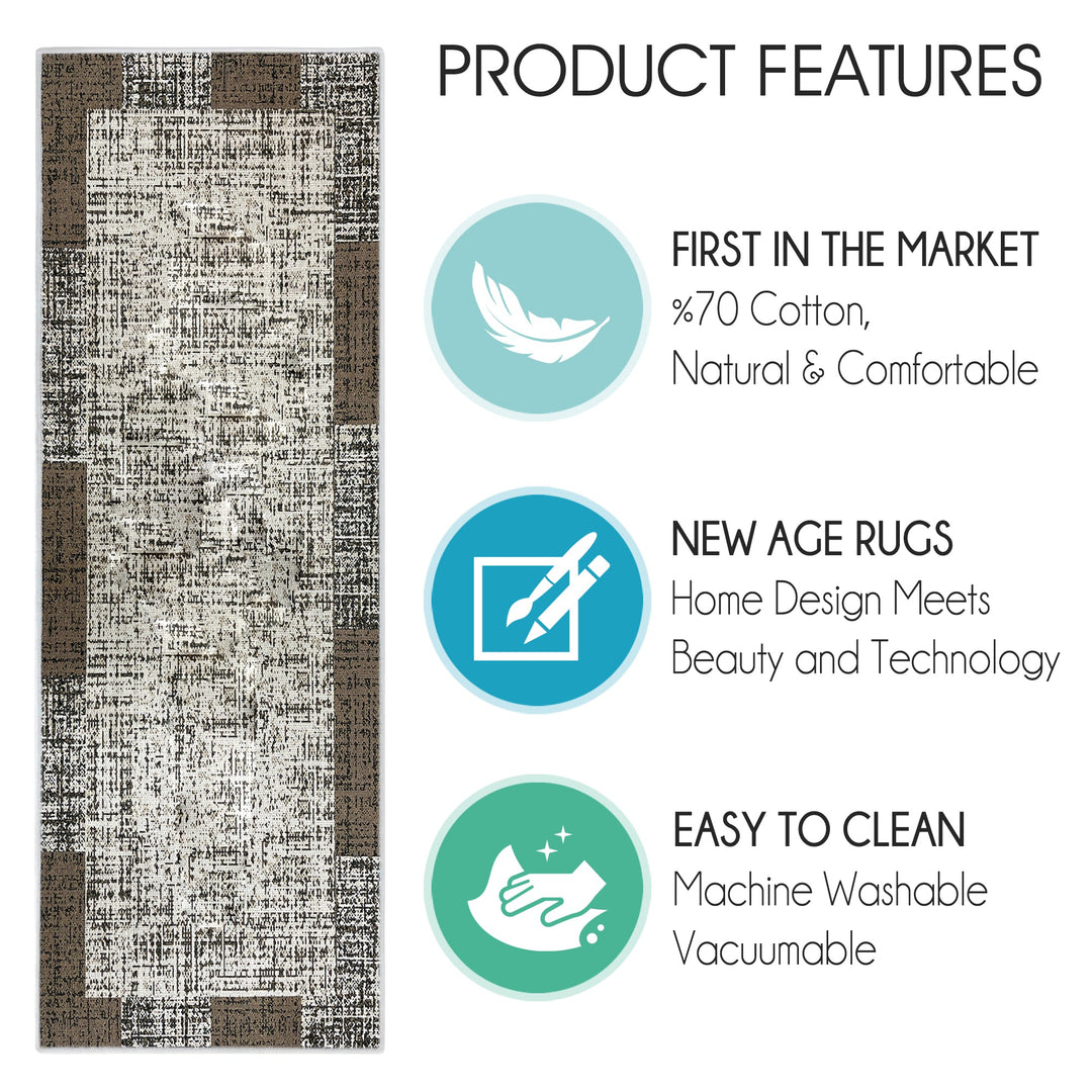 SussexHome Non Skid Washable Laundry Room Rug Runner - 20" x 59" | Brown Without Text