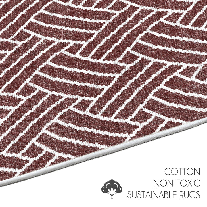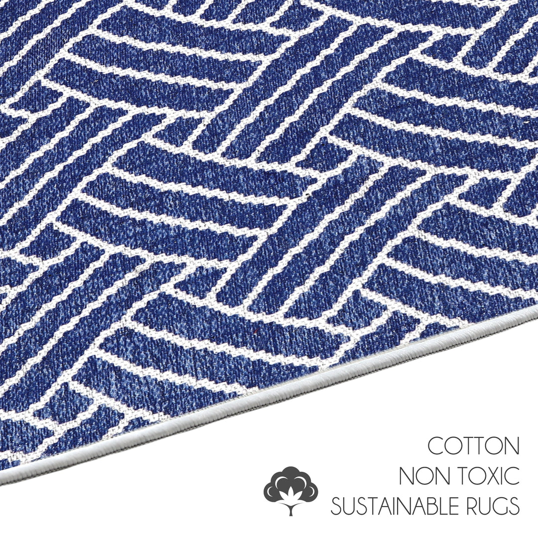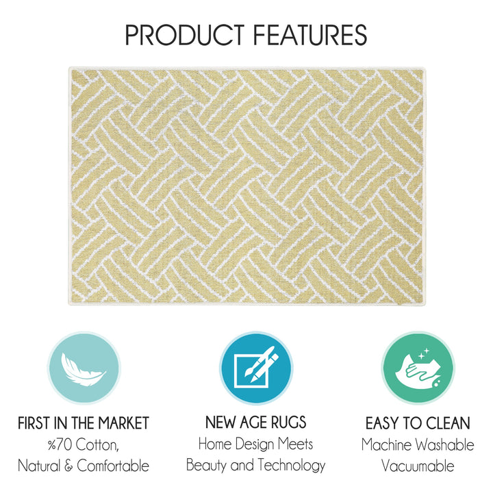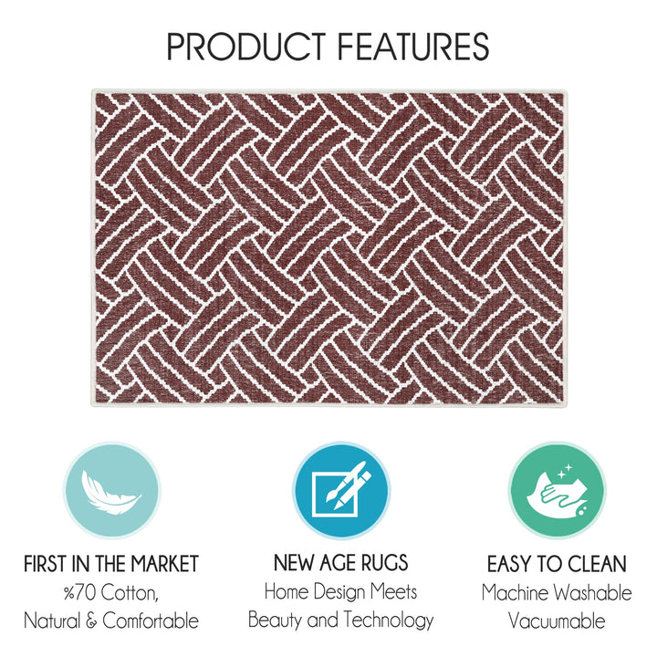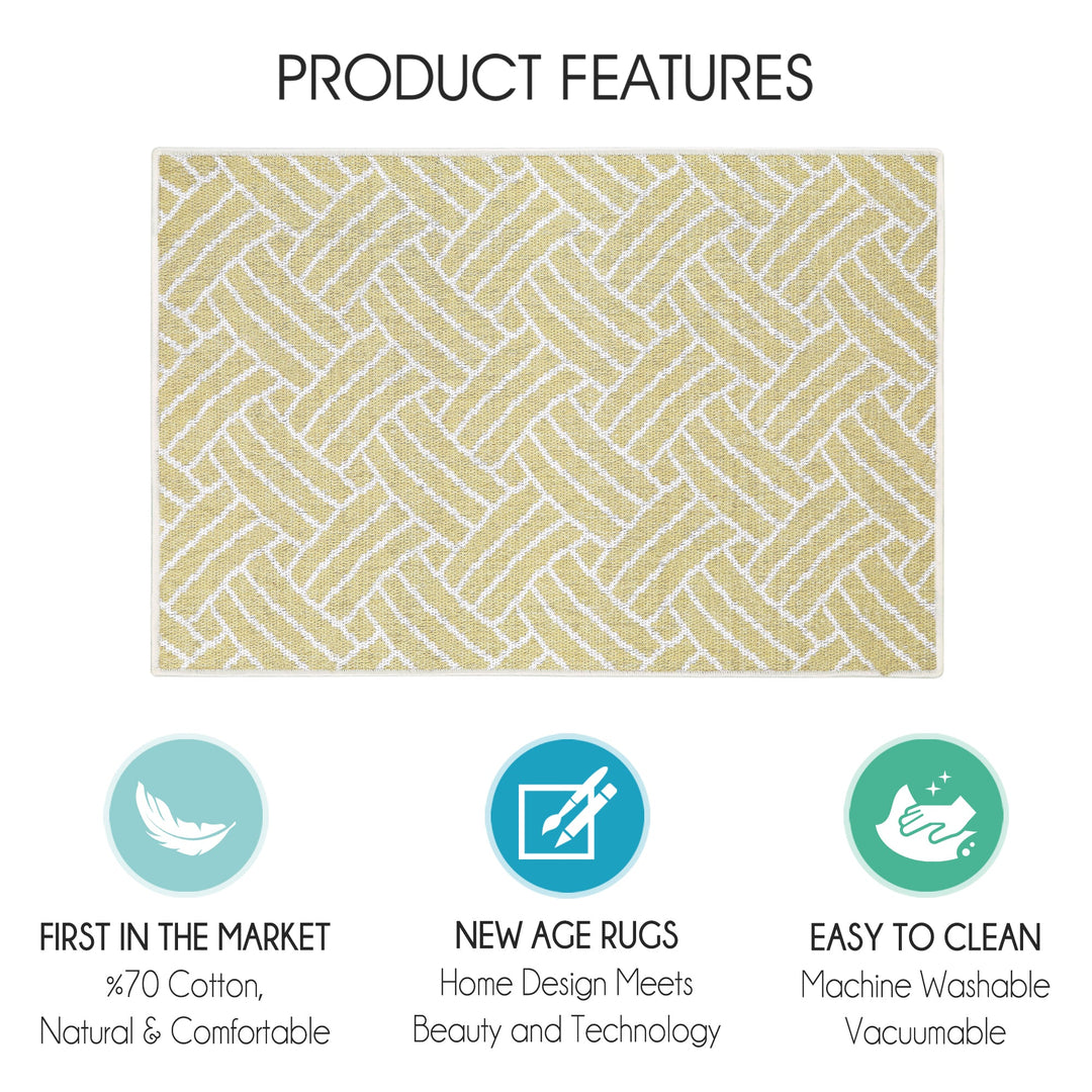Lightweight, soft to touch, and durable, 70% cotton and 30% polyester material of this lattice area rug is full of advantages and practical convenience.