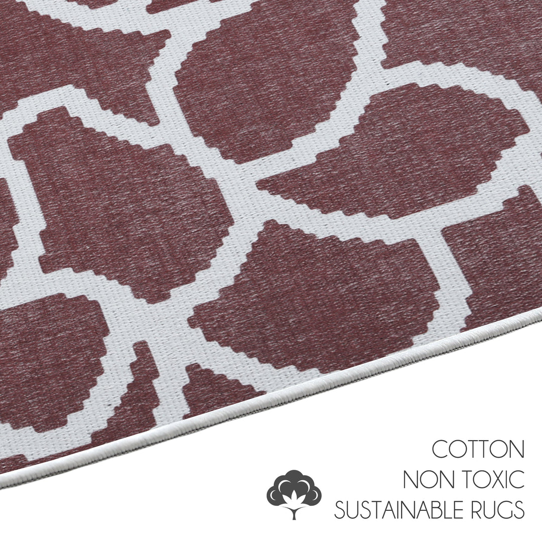 Lightweight, soft to touch, and durable, 70% cotton and 30% polyester material of this lattice area rug is full of advantages and practical convenience.