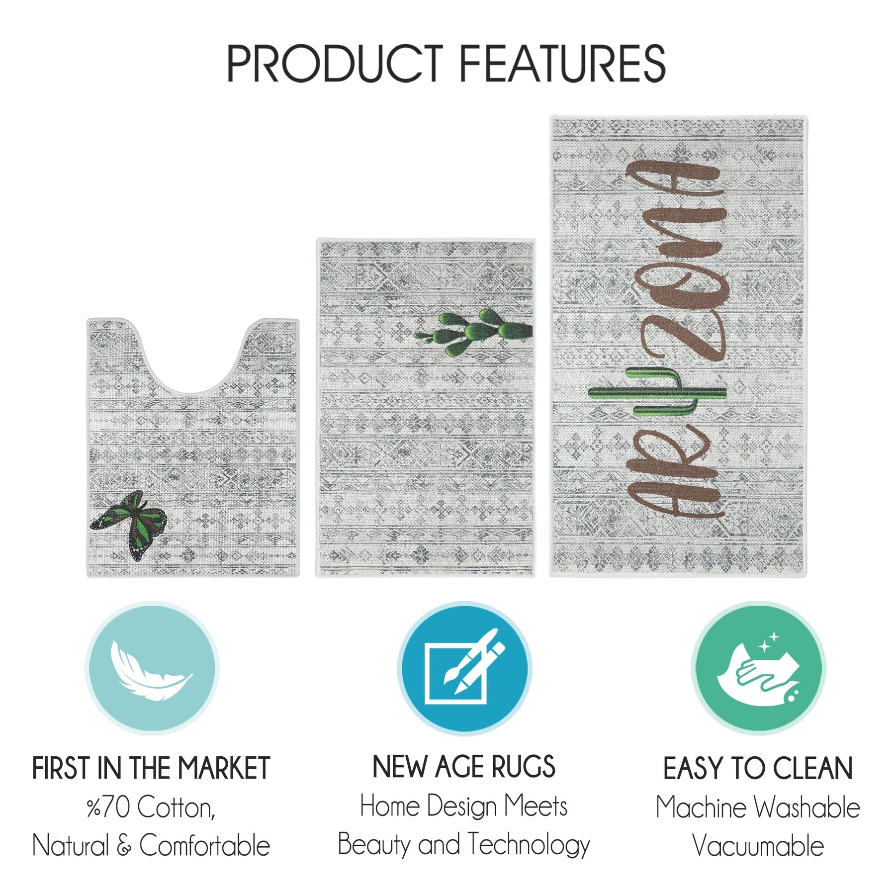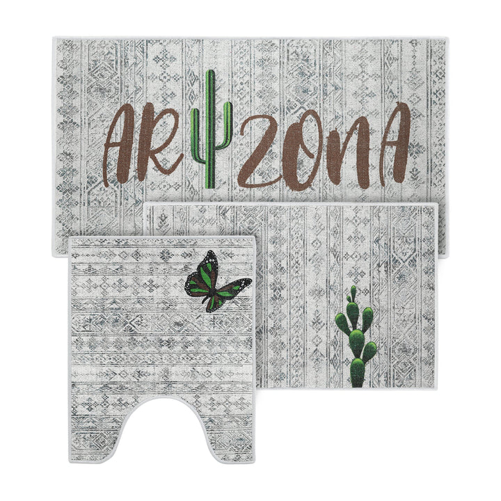 US States Arizona Design 3 Piece Bathroom Rugs Set |Gray