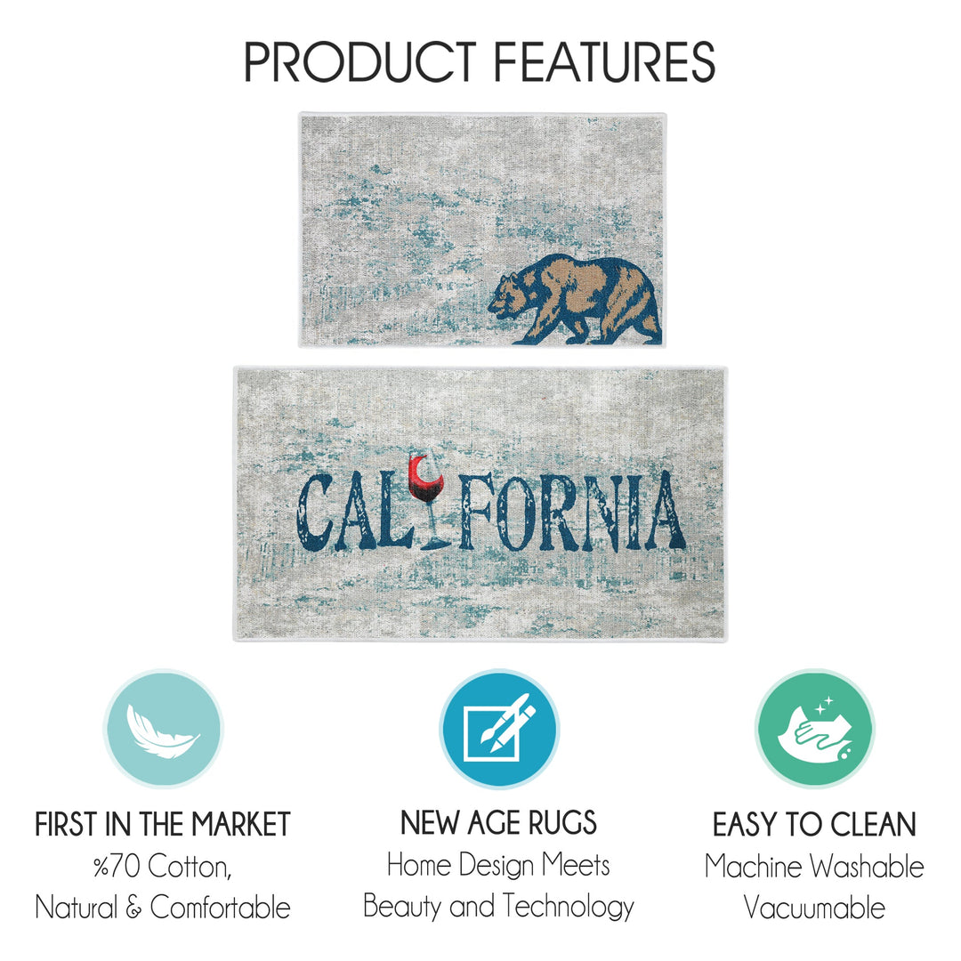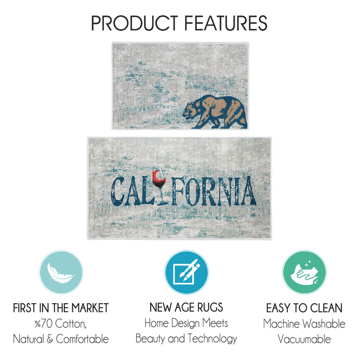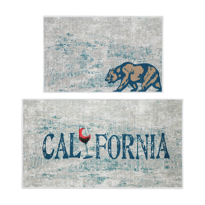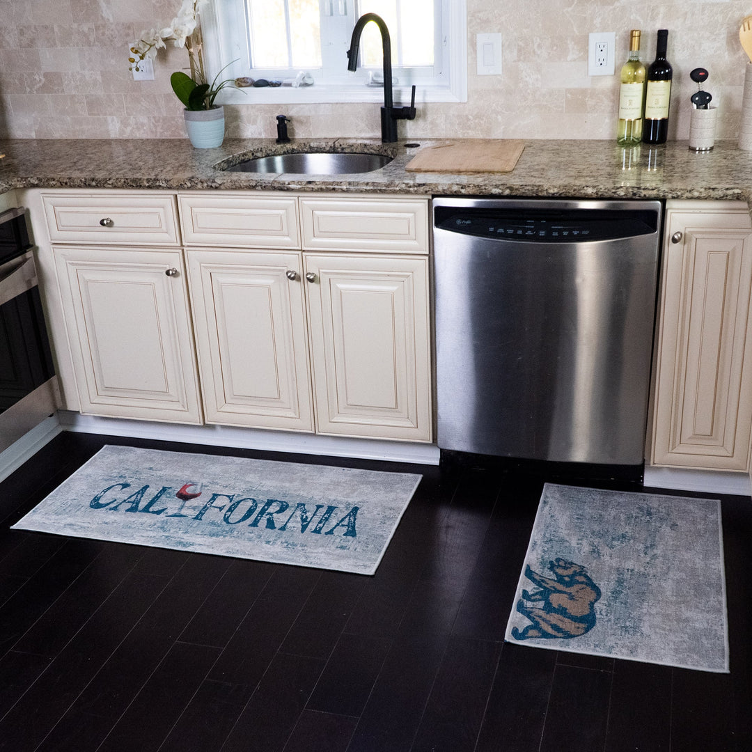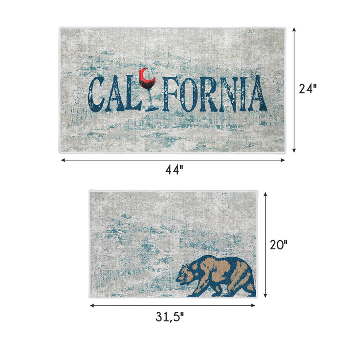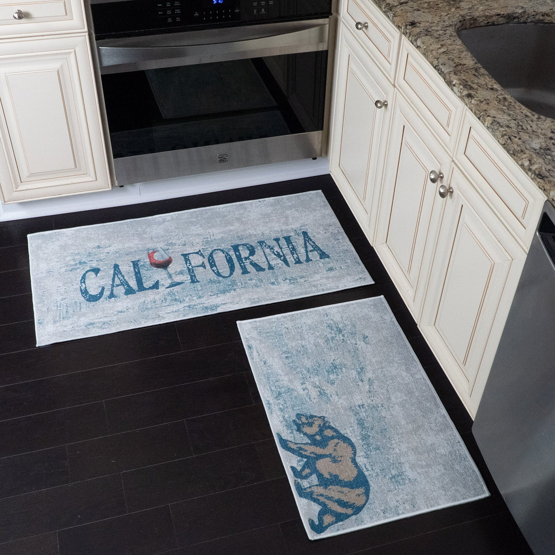 US States California Design Non Skid Washable Kitchen Runner Rugs Set of 2| 44 x 24 and 31.5 x 20 Inches Floor Mats|Blue