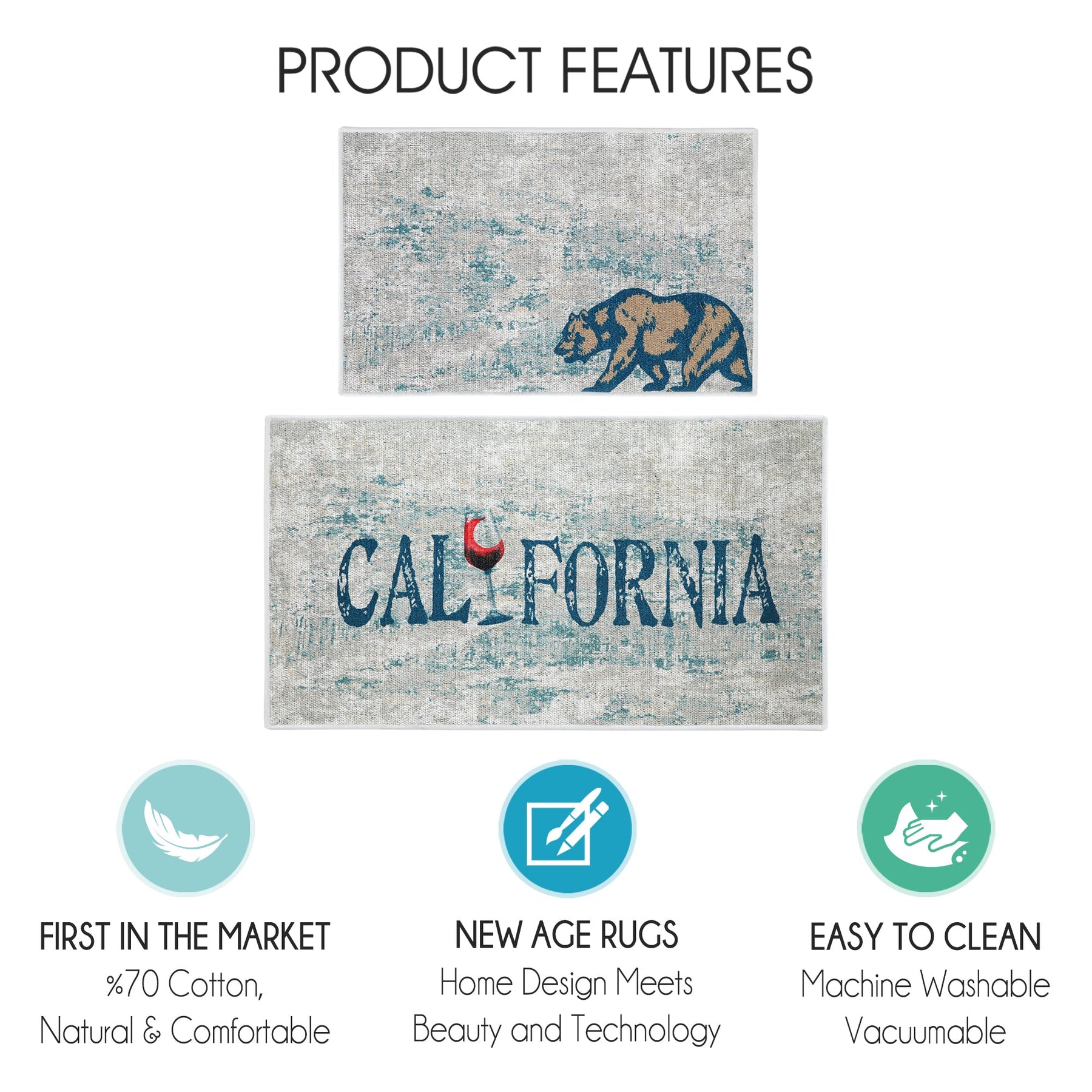 With quality materials paired with the latest technology in printing, our non slip area rugs will complement the modern and vintage decor by adding stylish accents and characteristic USA states patterns in bold and head-turning prints.