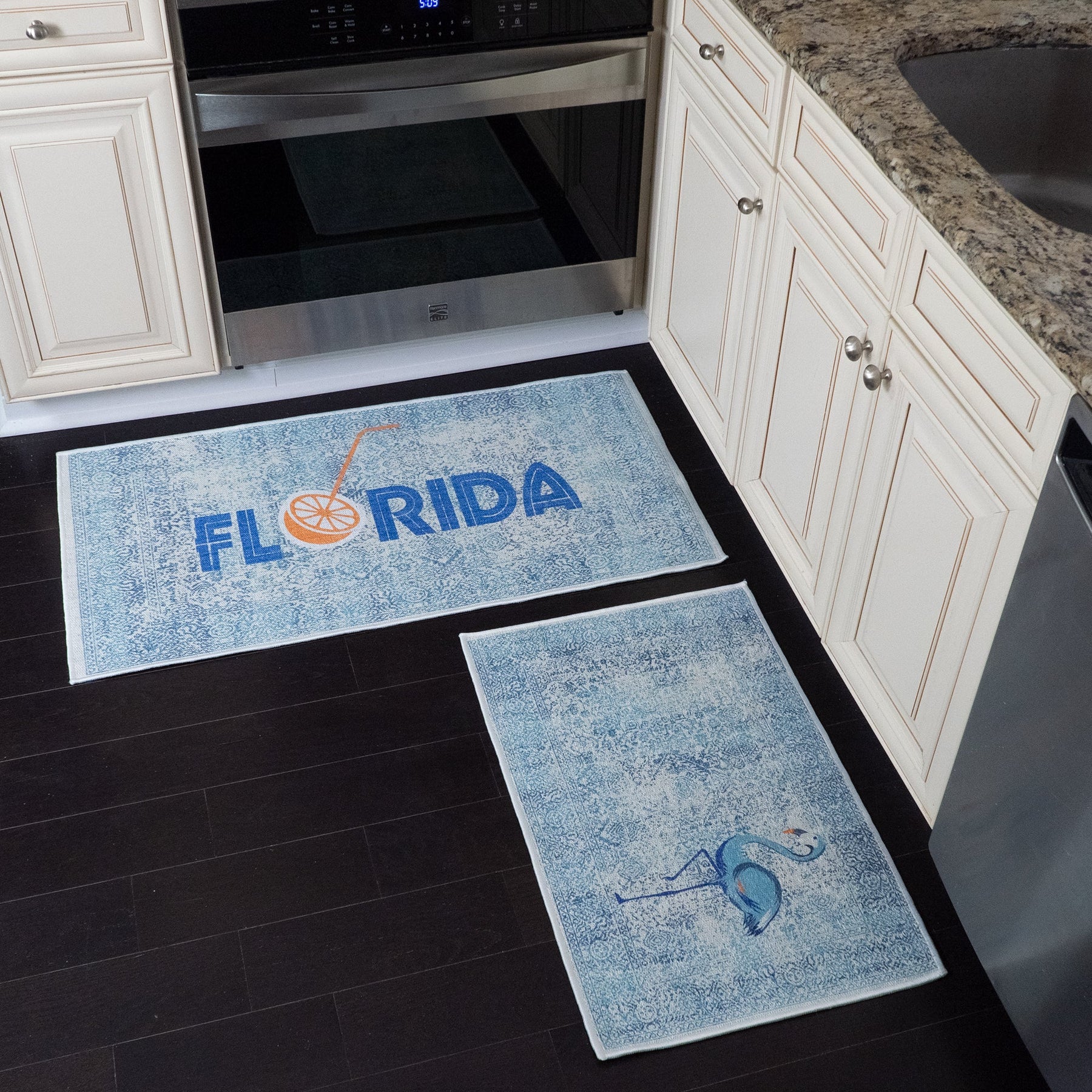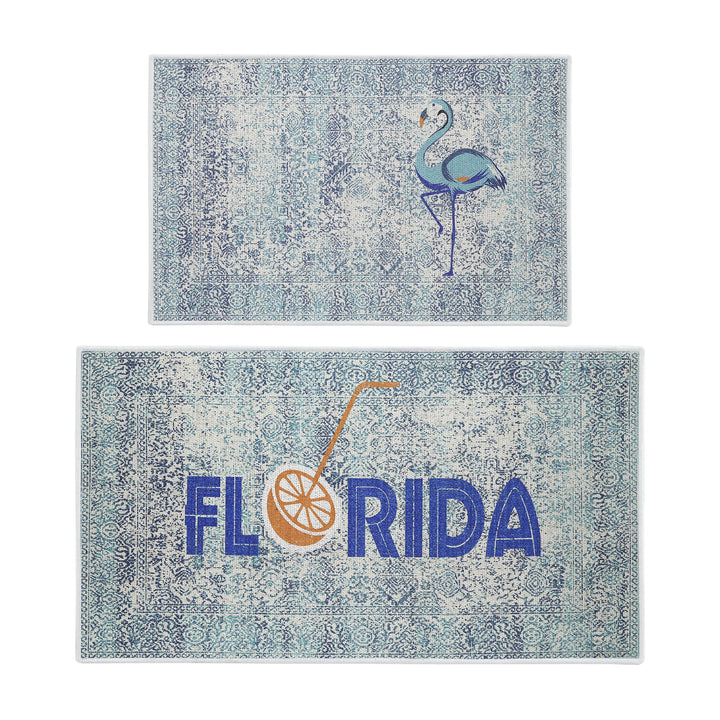 US States Florida Design Non Skid Washable Kitchen Runner Rugs Set of 2| 44 x 24 and 31.5 x 20 Inches Floor Mats|Silver