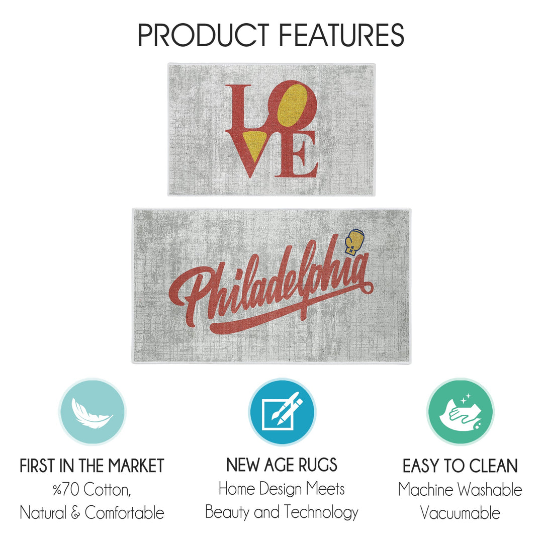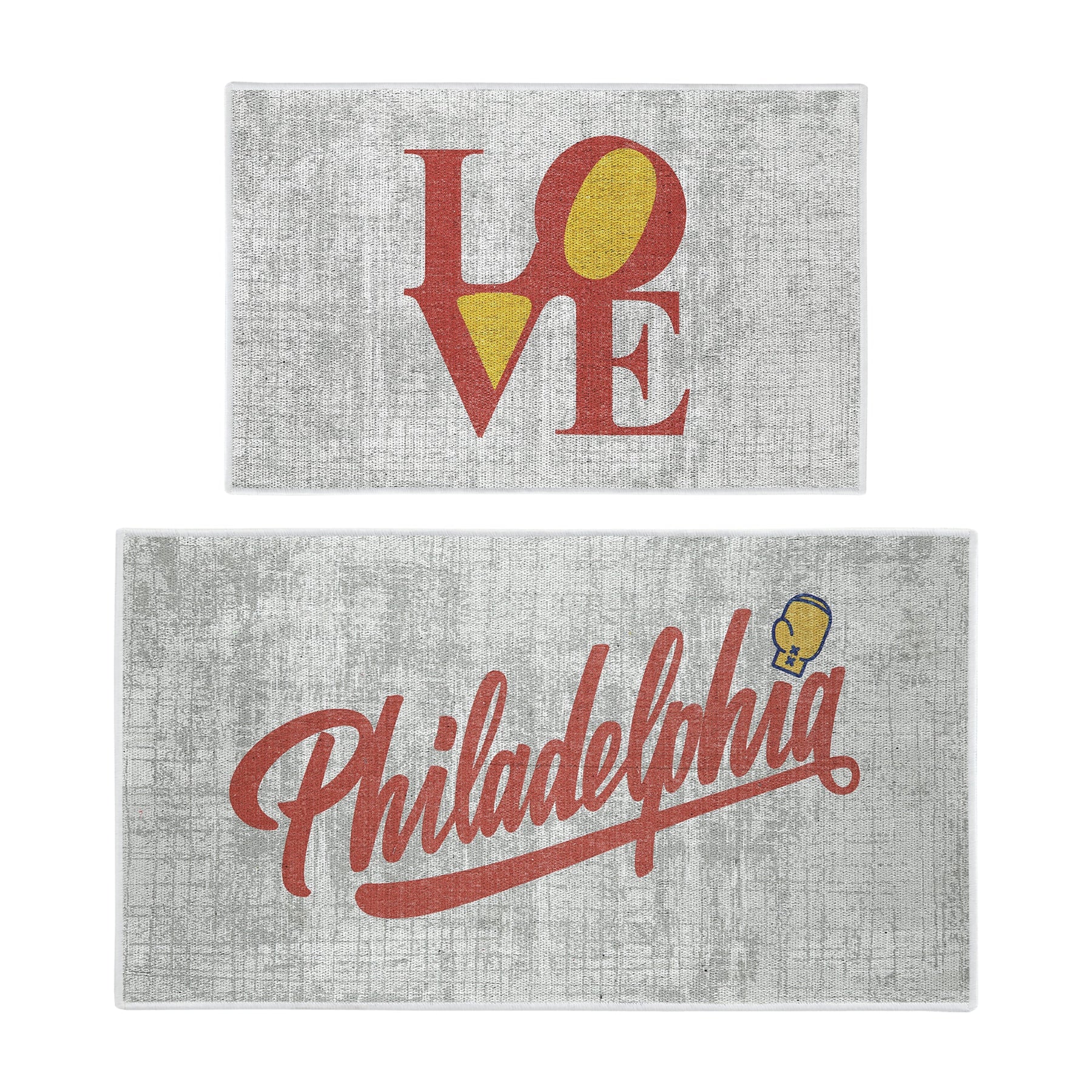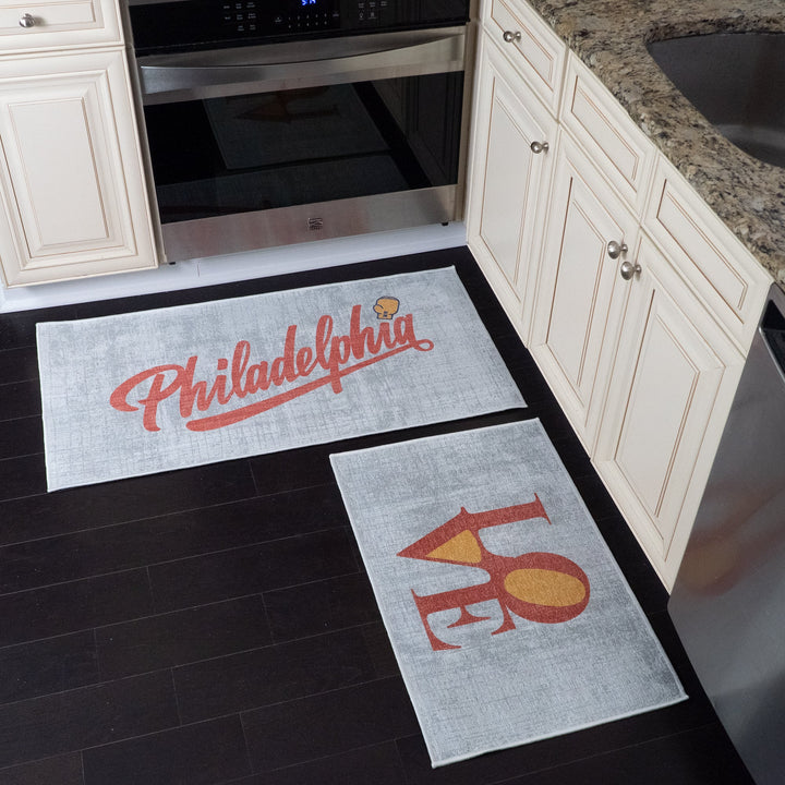 US States Philadelphia Design Non Skid Washable Kitchen Runner Rugs Set of 2| 44 x 24 and 31.5 x 20 Inches Floor Mats |Red