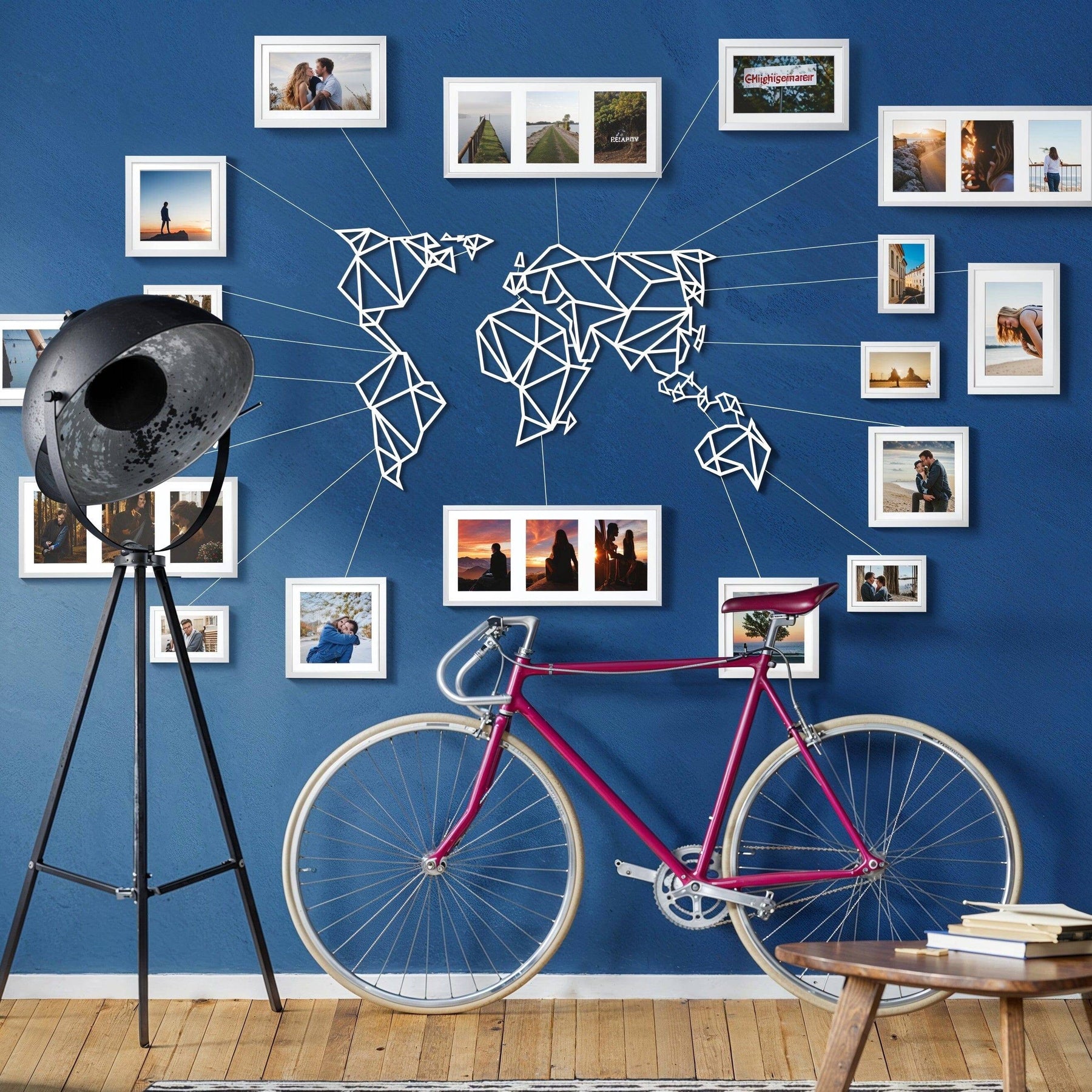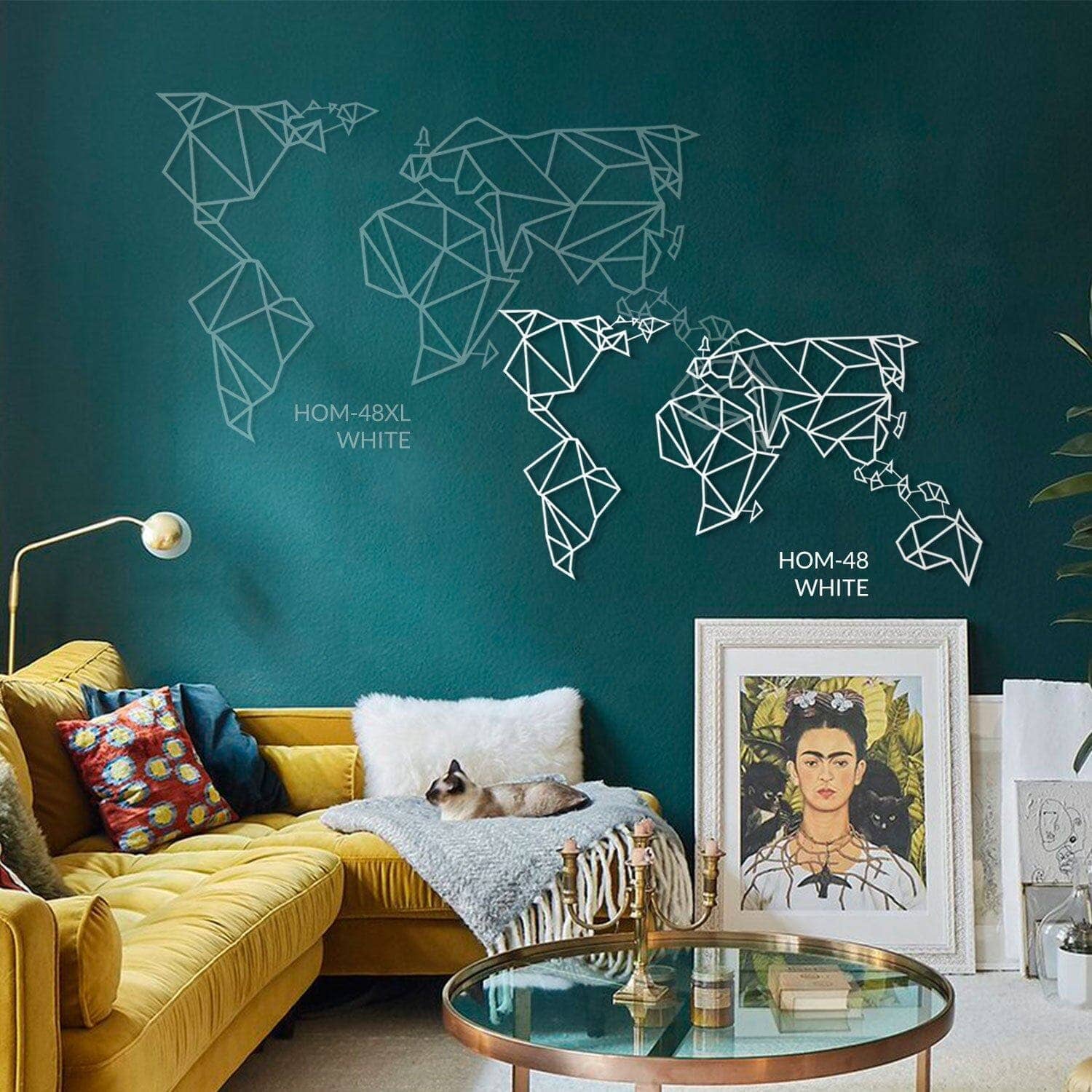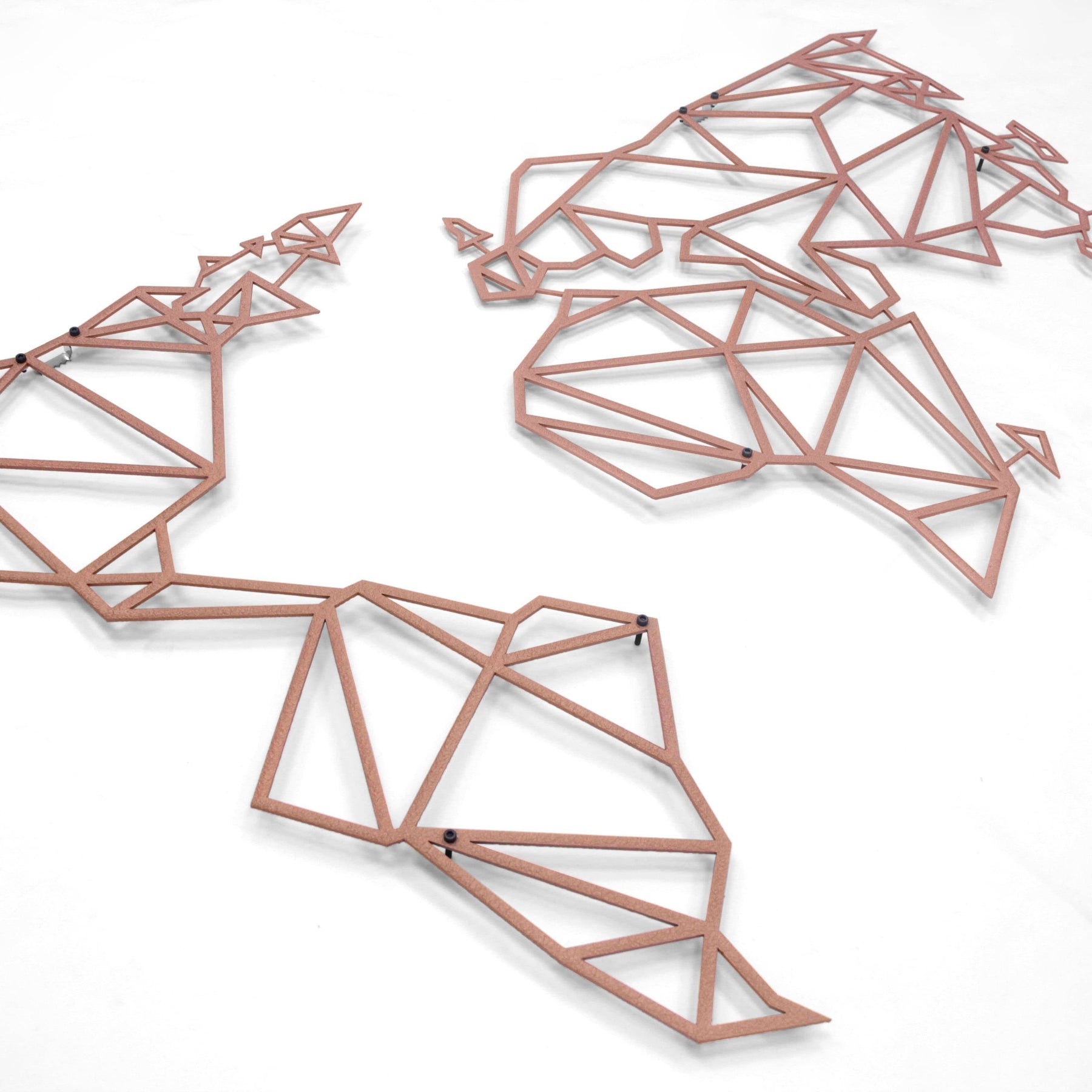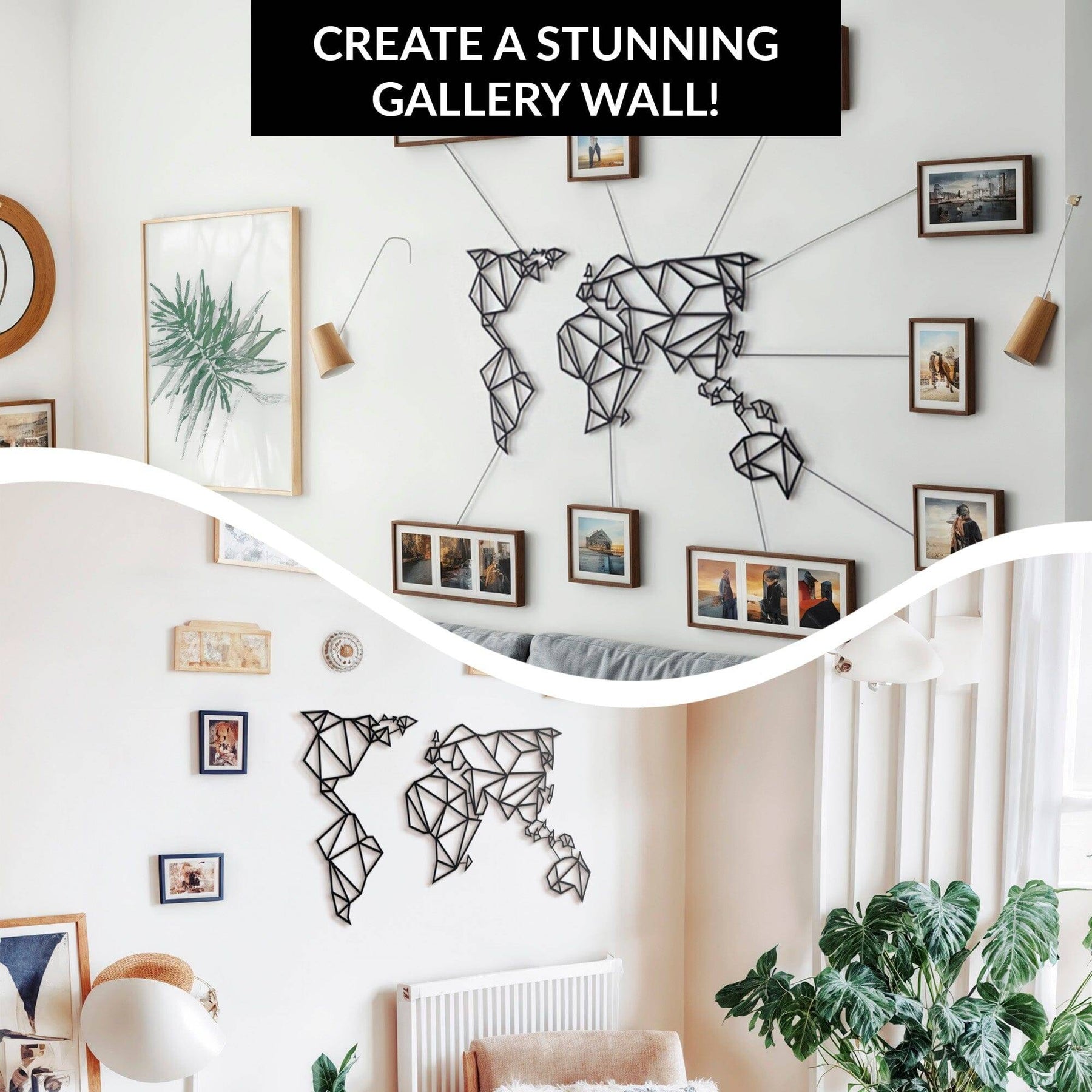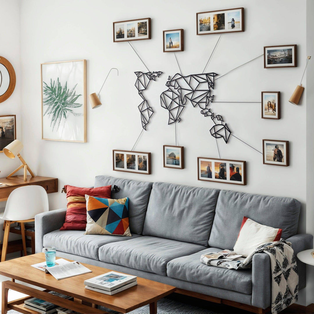 Our planet contains not just continents, mountains, and seas, but also holds your cherished memories. Bring them to life on your walls with our world map and impress your guests with this unique, decor. Choose from 4 different matte paint options, all with a modern and industrial flair. Made of 2mm thick metal, it stands 1.5 cm from the wall and comes with assembly instructions and an allen key. Perfect for both indoor and outdoor use. Assembly required for Product MOP-01(Black). Please note: frames shown in image are not included in package.